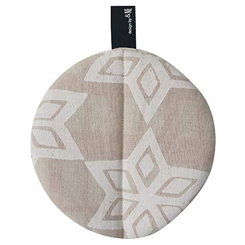 【商品説明】 持ちやすい、敷きやすい、シンプルな鍋つかみ 人気商品の三角鍋つかみではつかみきれないサイズに対応したまる型鍋つかみ。 真ん中にステッチがはいっているため持ちやすく、そのまま鍋敷きとしても使えます。 ループリボン付きで柄もリバーシブルなため、フックにかけおくだけでインテリアになります♪