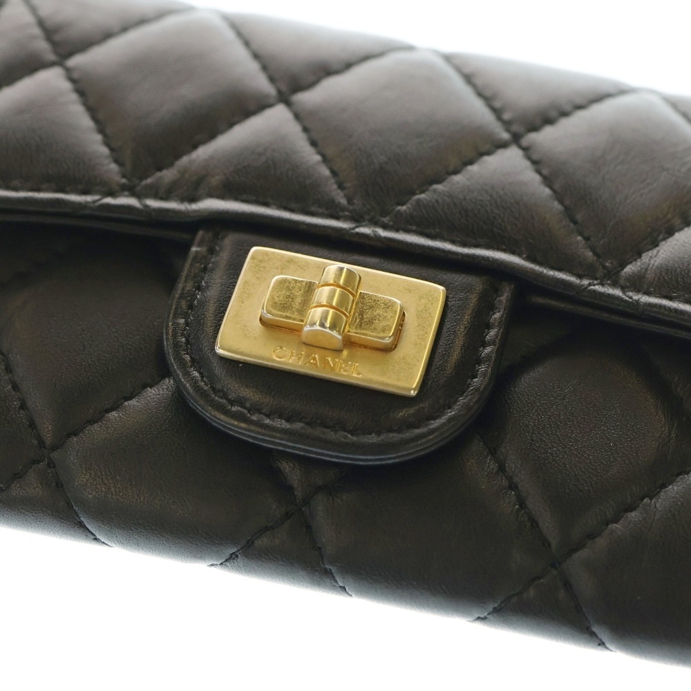 CHANEL シャネル 2.55 マトラッセ スモールウォレット カードケース ブラック ラムスキン ゴールド金具