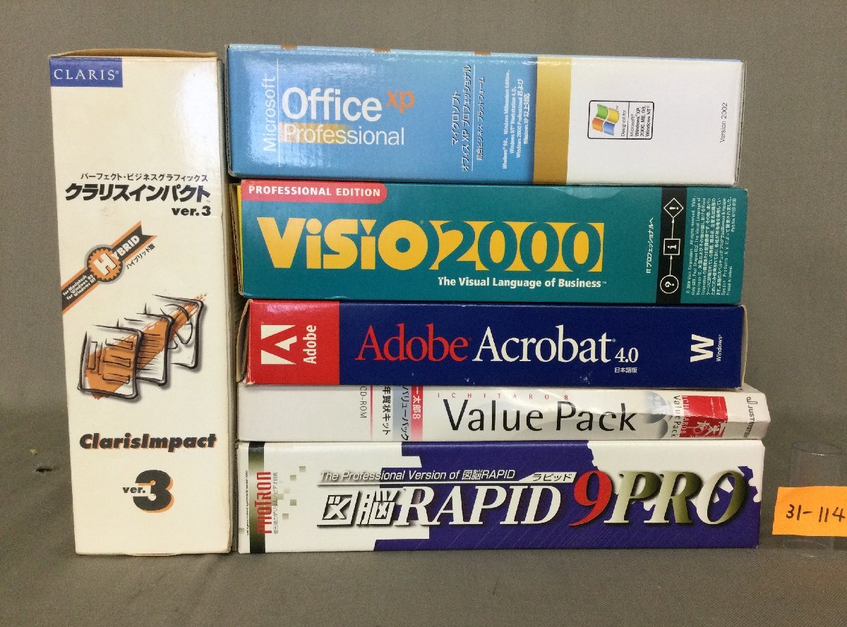 ●★31―114★パソコンソフト クラリスインパクト/オフィスXPプロ/ViSio2000/AdobeAcrobat/ValuePack/頭脳RAPID ジャンクまとめ[100]