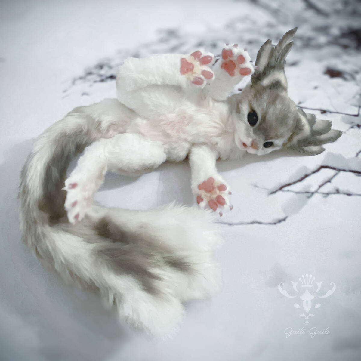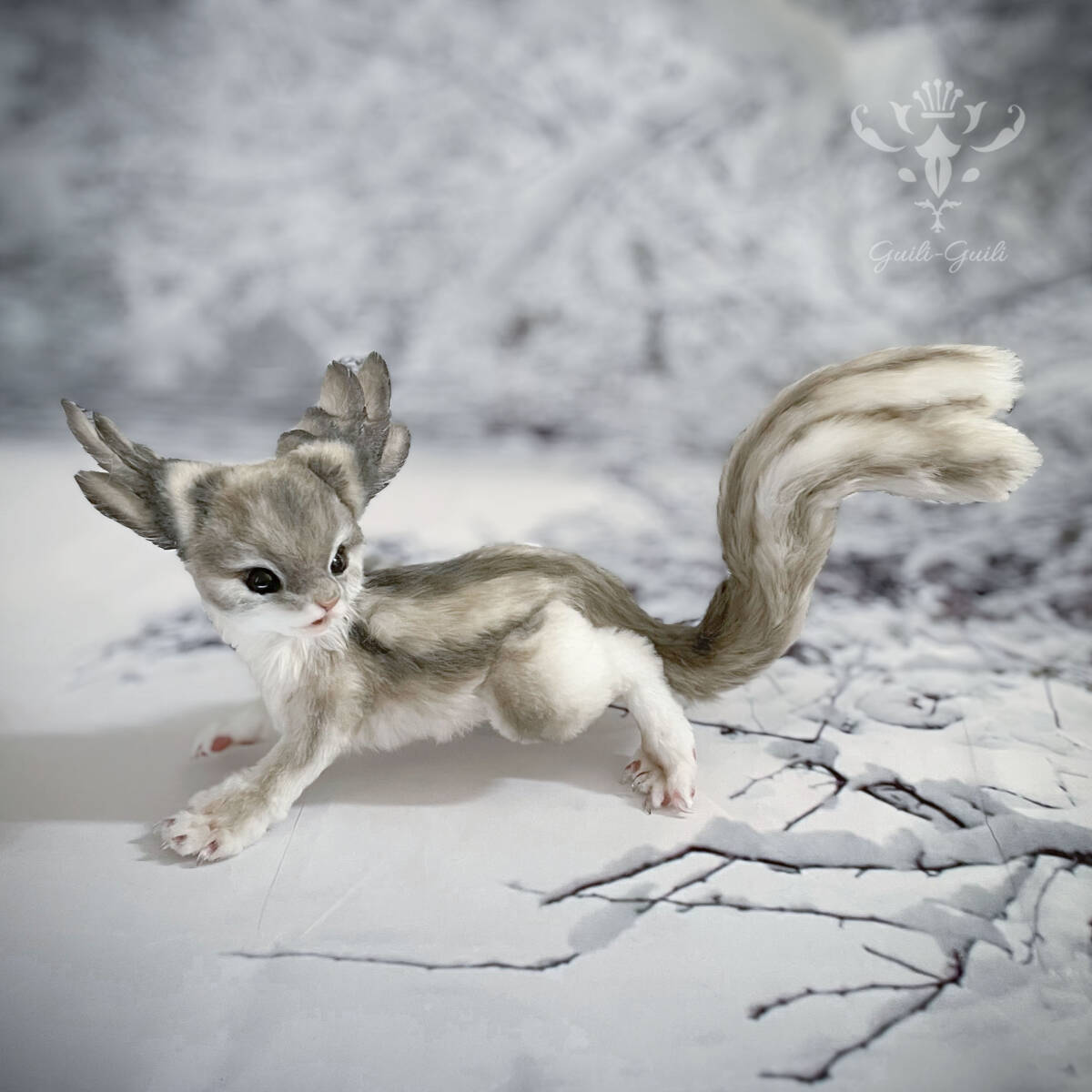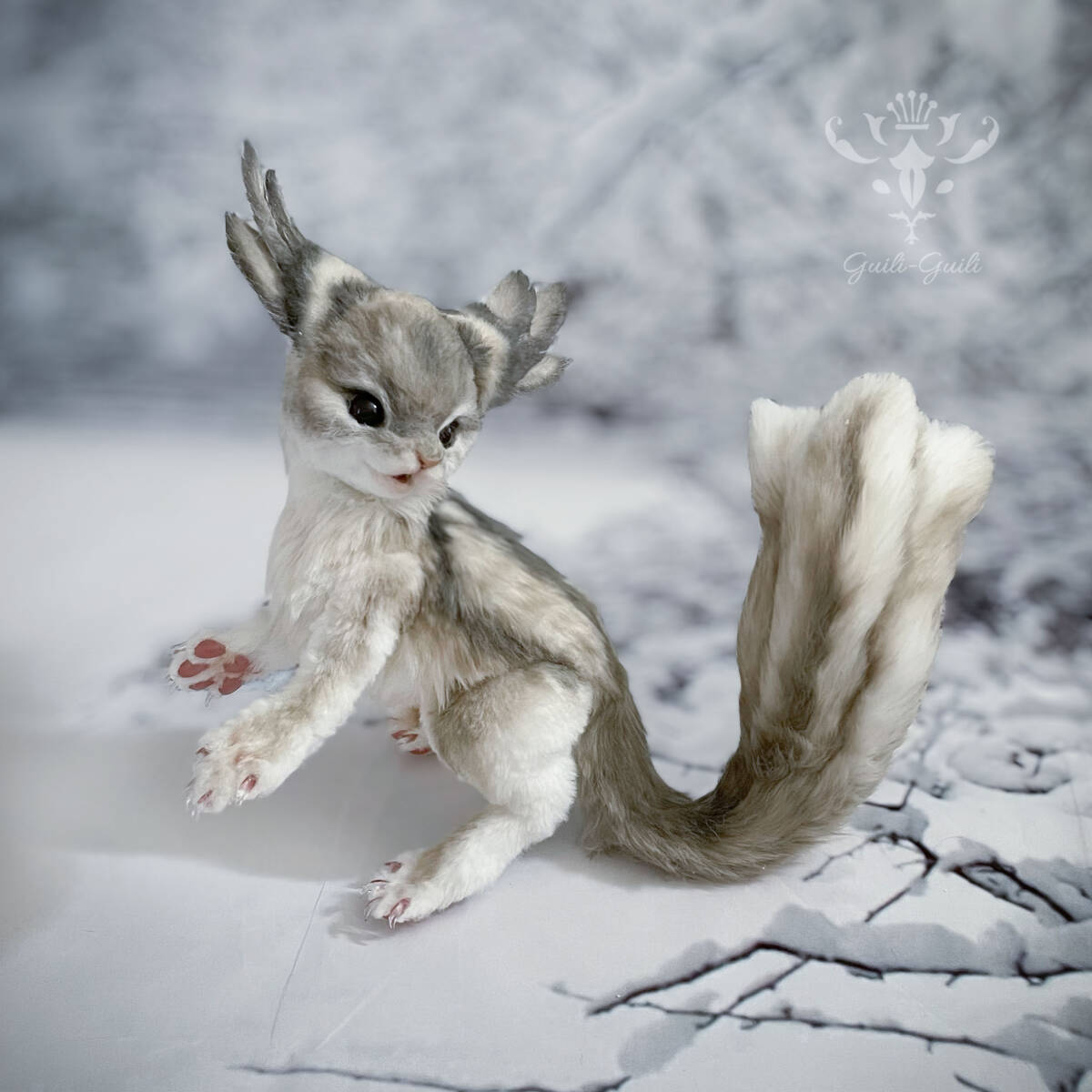 *guili-guili* シマシマエナガのケモノ / フル可動アートドール  架空生物 幻獣 ハンドメイド ぬいぐるみ artdoll shimaenaga