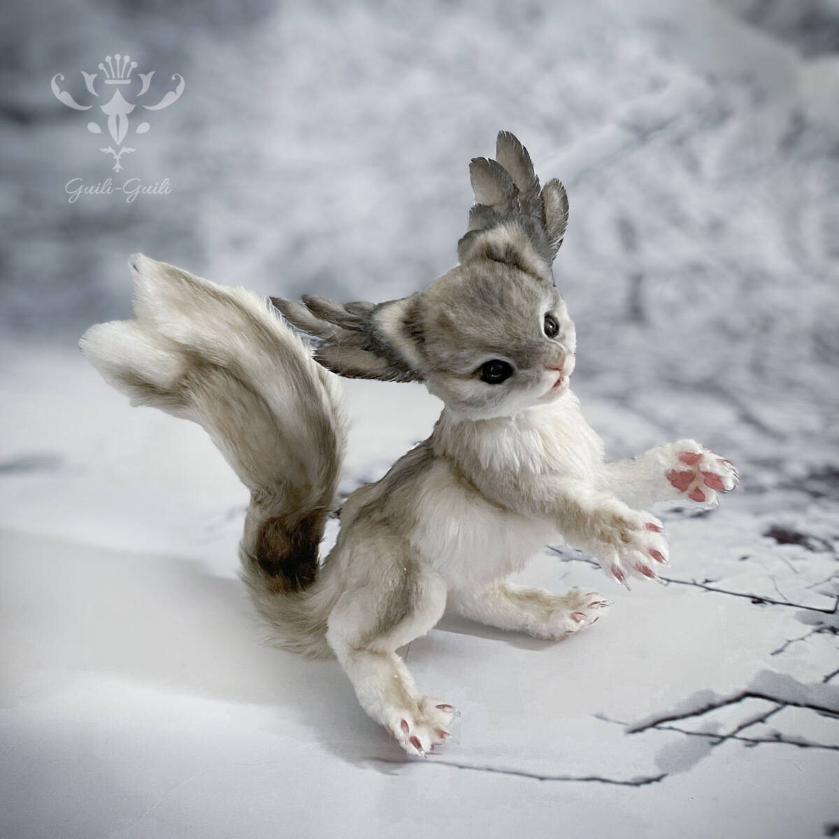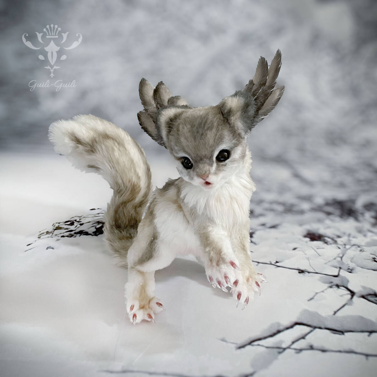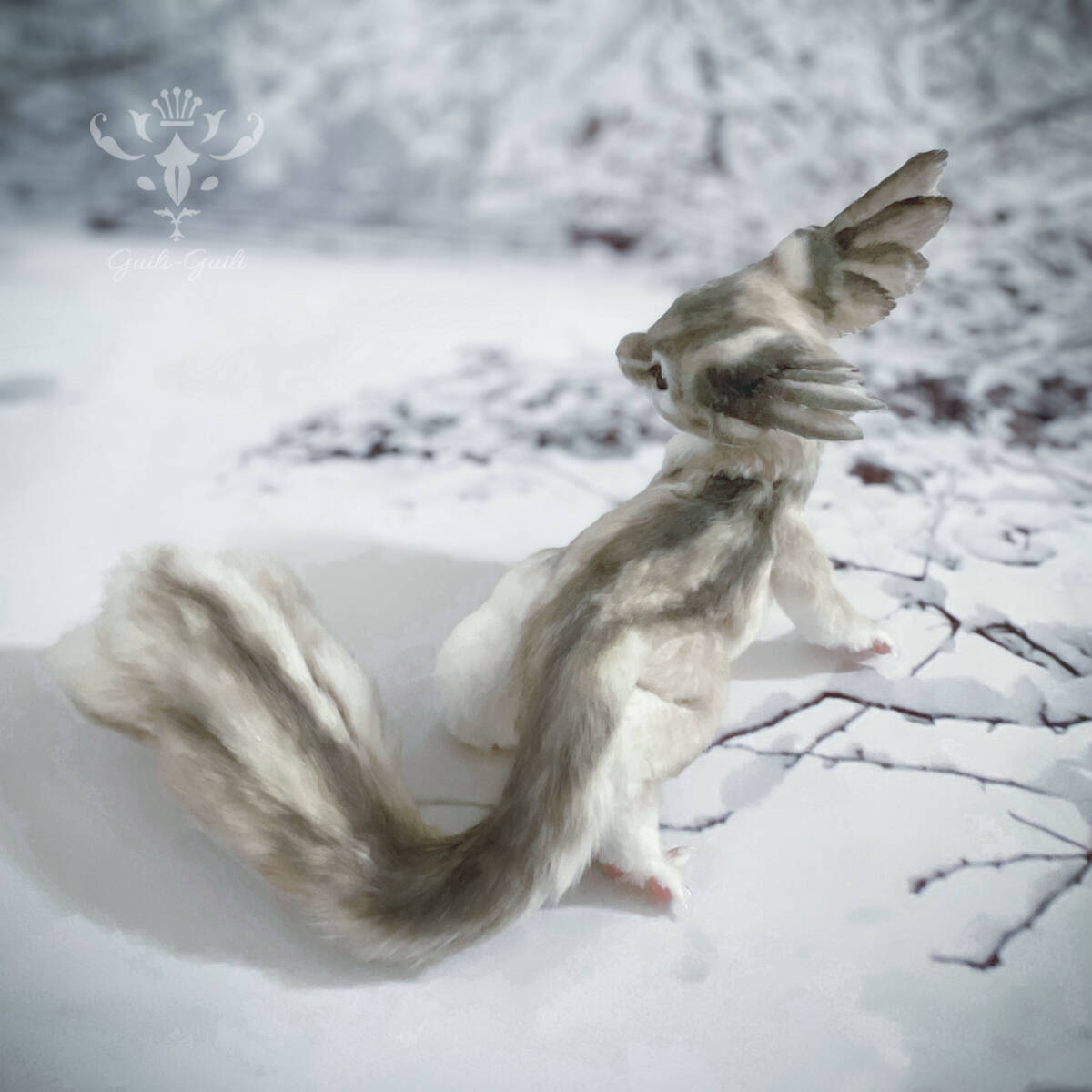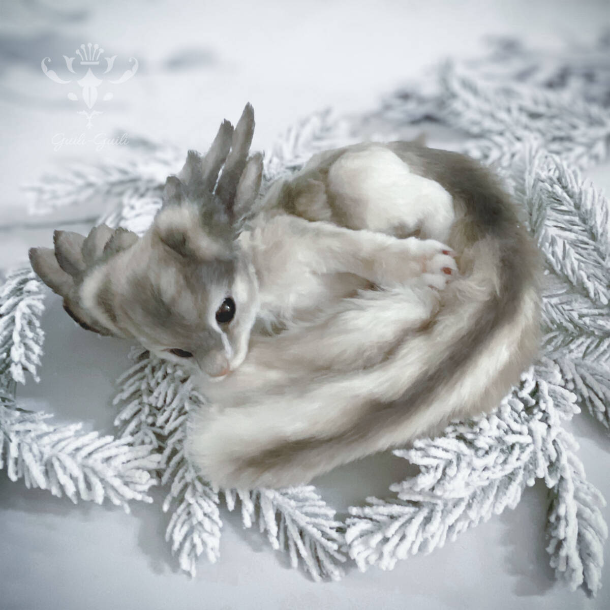 *guili-guili* シマシマエナガのケモノ / フル可動アートドール  架空生物 幻獣 ハンドメイド ぬいぐるみ artdoll shimaenaga