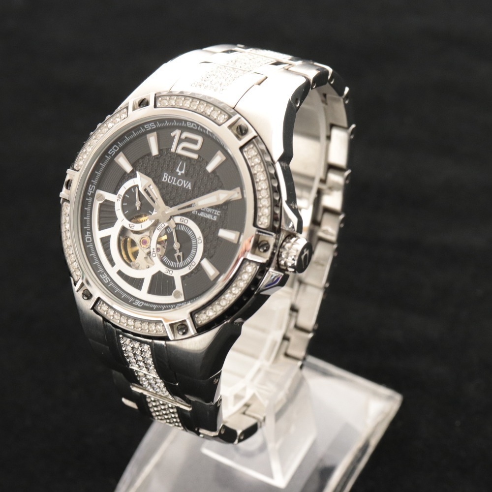 | ブローバ 腕時計 98A128 裏スケルトン 自動巻き 192.0g メンズ シルバー 文字盤 ブラック 付属品付き 付属品:写真のものが全てです ○実寸 腕周り(内周):〜17.5cm ケース縦:5.8cm ケース横(リューズ含まず):4.5cm グラム:192.0g ○コンディション ベルト:綺麗な状態 ベゼル:綺麗な状態 リューズ:綺麗な状態 風防:綺麗な状態 ケース:綺麗な状態 裏蓋:綺麗な状態 文字盤:綺麗な状態 針:綺麗な状態 ⇒ アパレル商品のカラー基準・採寸方法・海外サイズ換算表 (参考)トルソー(マネキン)は男女ともMサイズです。 素材:品質の記載は見受けられません。 | ||||||||||||||||