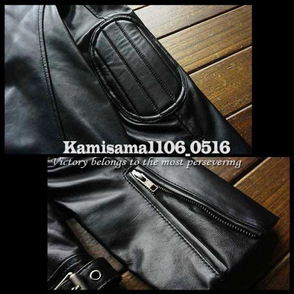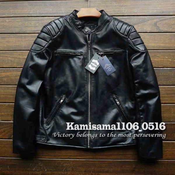 高級■ GABRIELメンズ 本革ジャケット ムレザー 羊革 黒/ブラックレザー スリムフィット シングルライダース※2010/【3XL】