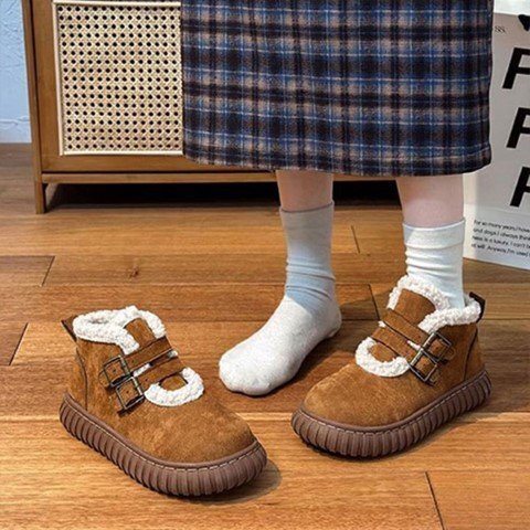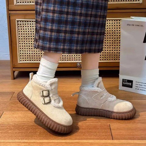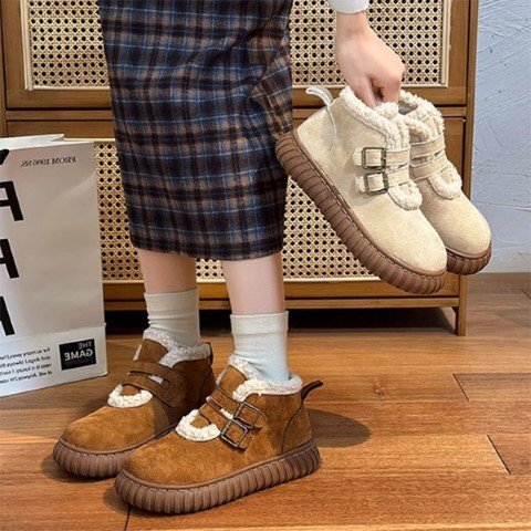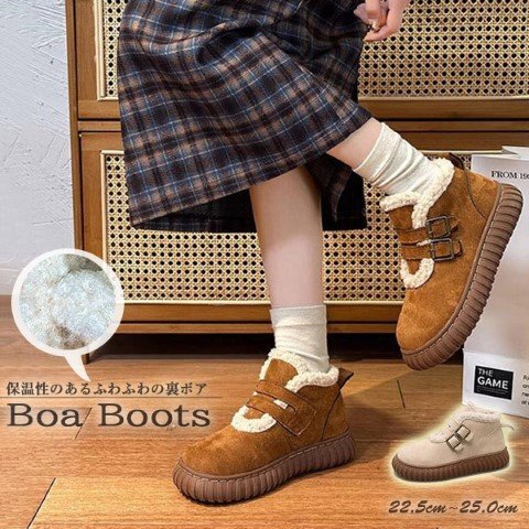 保温性のあるふわふわの裏ボア ムートン風ショートブーツ