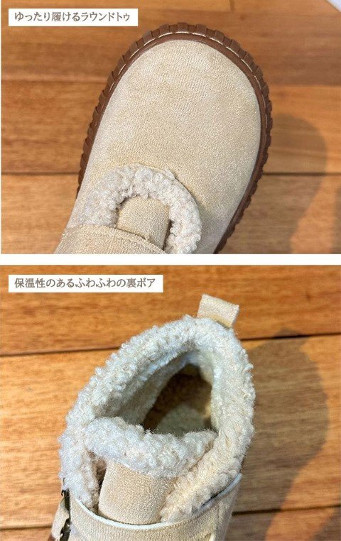 ・保温性のあるふわふわの裏ボアで寒い時期も暖かく過ごせます。
