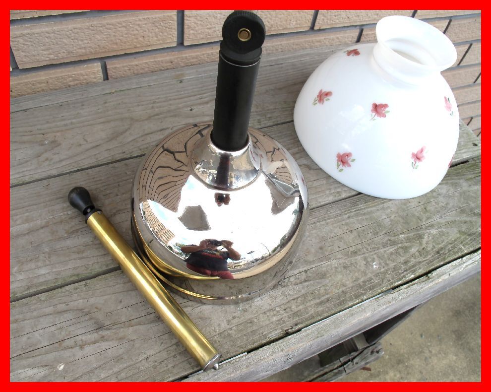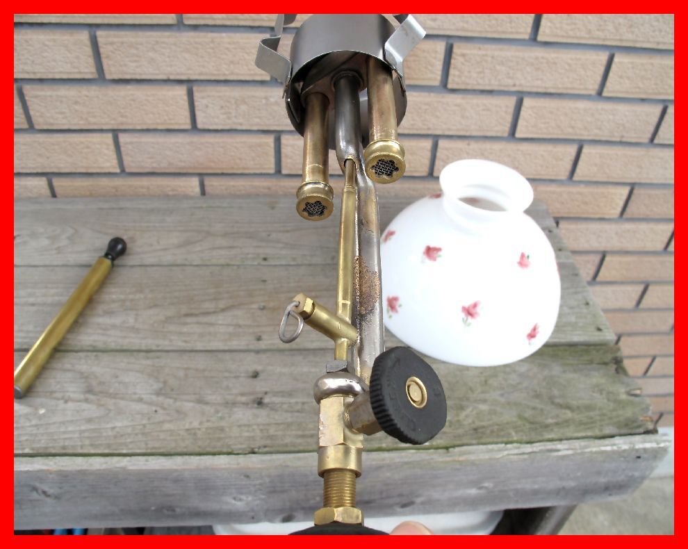 【M】USA 超鏡面 CQ真鍮メッキタンク クイックライト 花柄シェード 1920年頃製 コールマン 燃焼中動画 完全OH 200 202