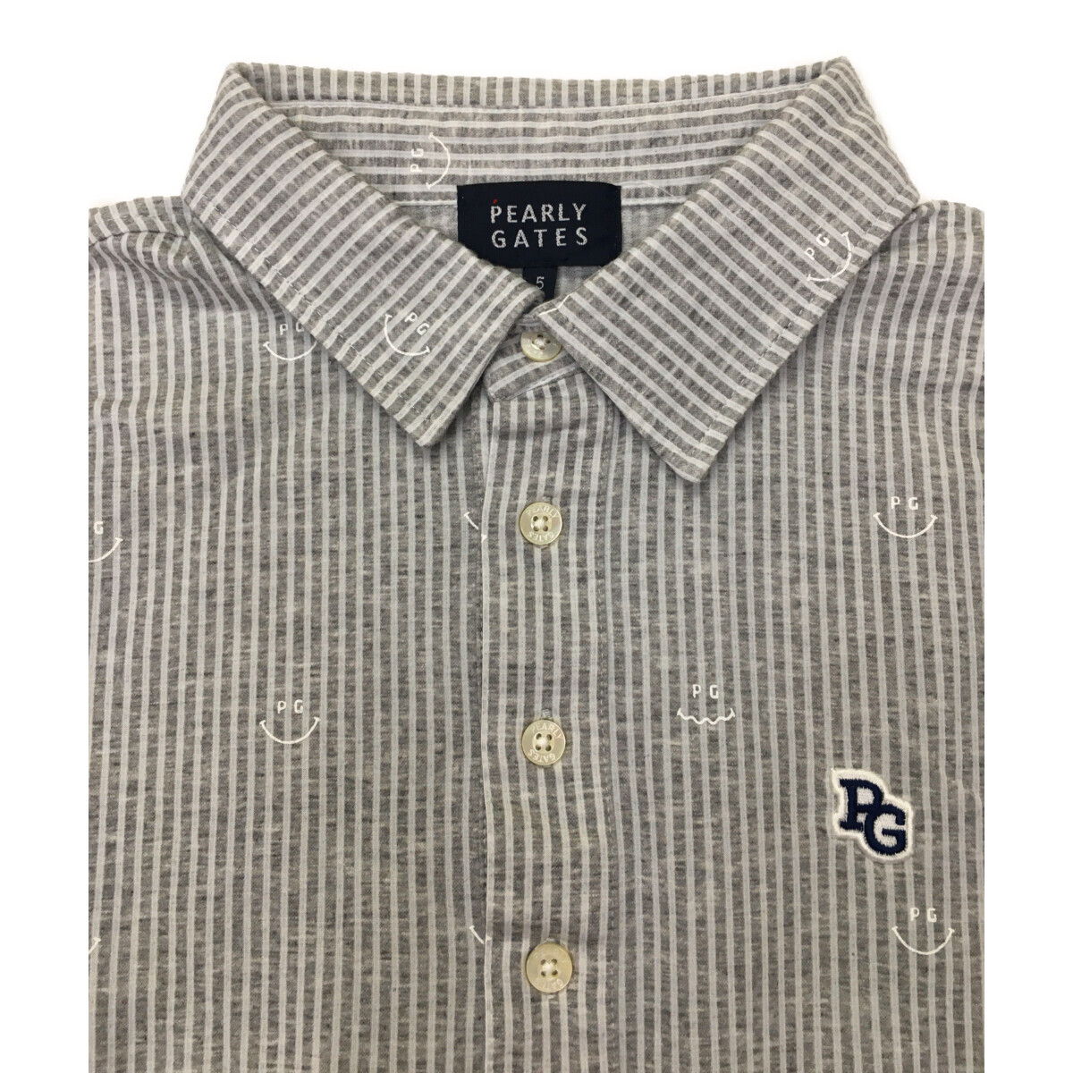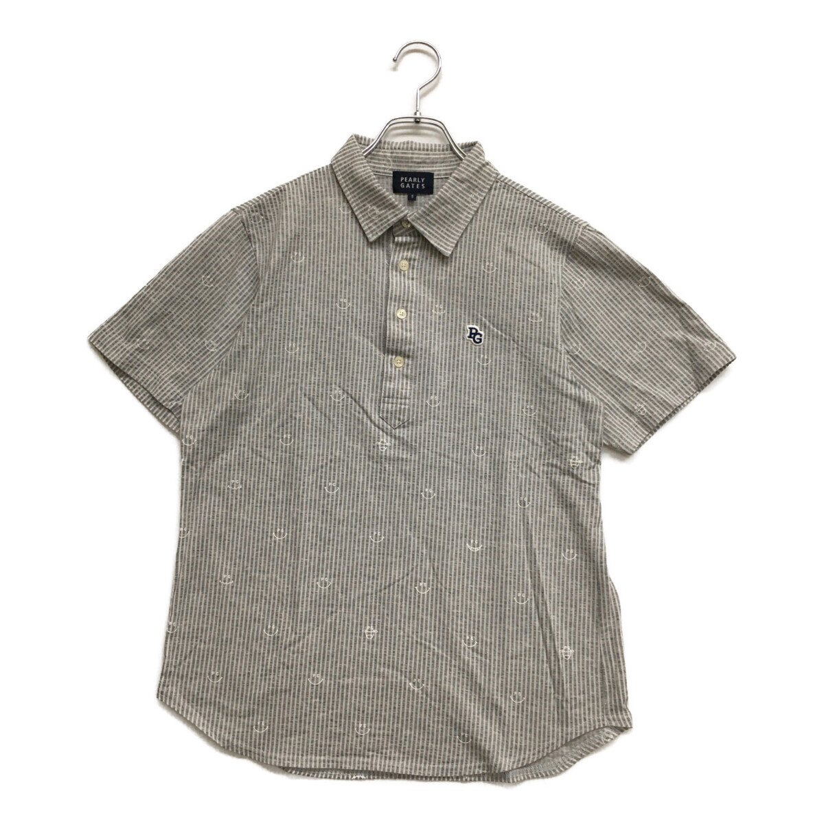 coco 中古【値下げ】 パーリーゲイツ PEARLY GATES メンズ 半袖ポロシャツ 5(L) グレー系 訳あり ストライプ ネコパケ発送可 K6386