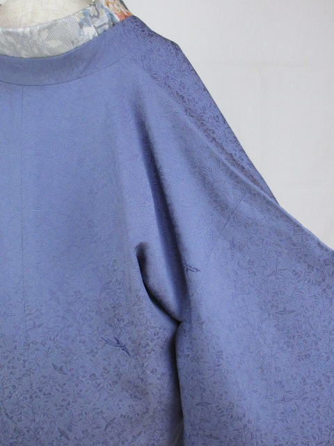 | しっかりとした地紋に鳥や花の切りビロードのラグジュアリーなロングコートです。 実物の色は1枚目から4枚目の写真が近く、灰みの青紫の青藤色系です。切りビロードの色も1枚目から4枚目の写真が近いです。(和色大辞典参考) 未着用・仕付けつきの新古品で、キレイな状態です。 ※コート以外は対象外商品です。 ◆サイズ(cm)と素材 身丈(肩から)94 裄丈67 袖丈48 前幅22・5 後幅30・5 素材・・・正絹 ◎早期終了する場合もあります。 | |