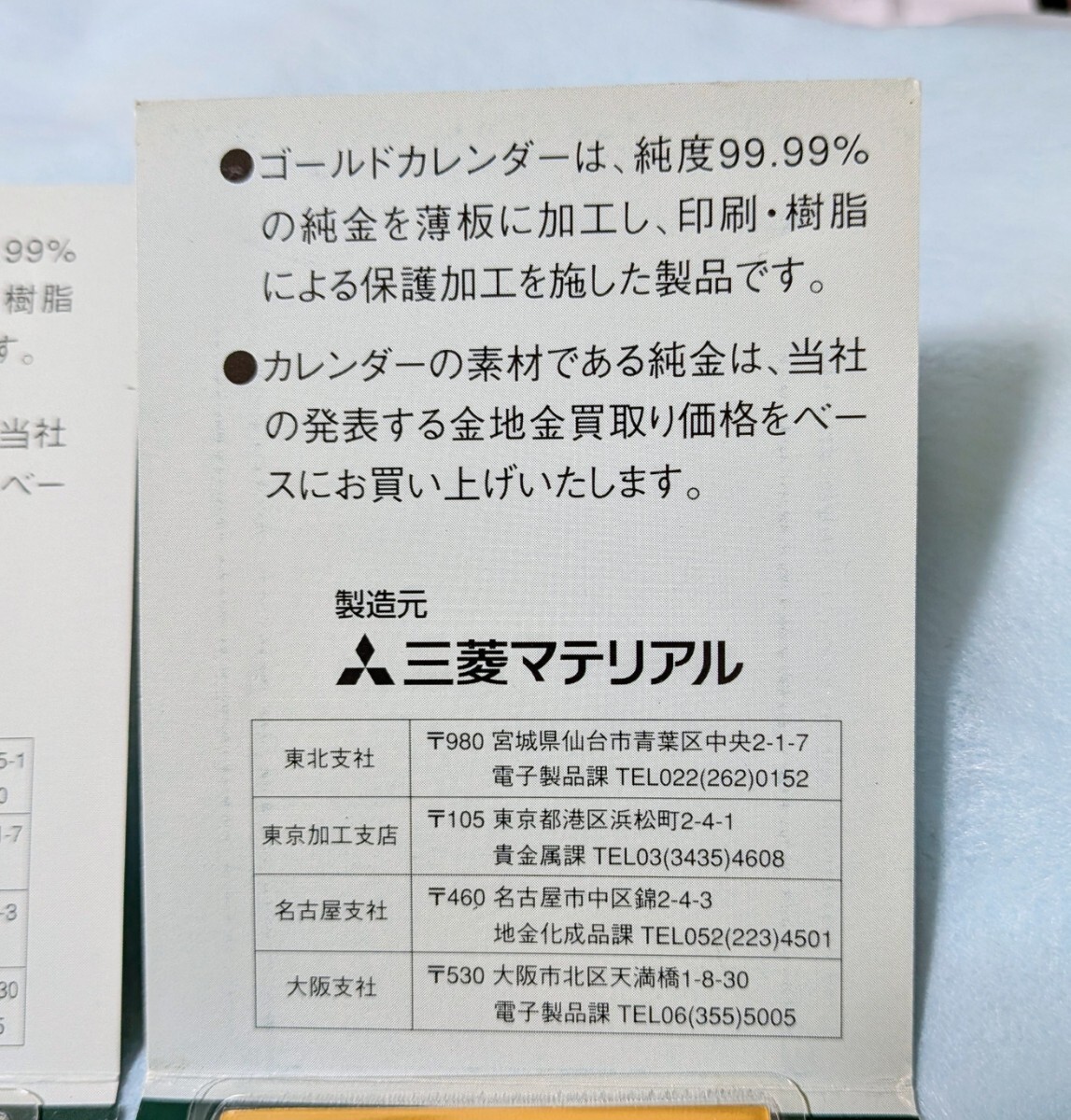 国内のグッド・デリバリー・バー認定企業である三菱マテリアルの純金カードです。(三菱マテリアルの買取り証明付き)