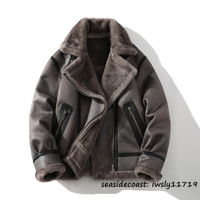 入手困難◆定価16万 超希少 ムートンコート 超防寒 厚手 裏ボア 毛皮 ファーコート ブルゾン ライトジャケット ジャンパー ライダース 3XL