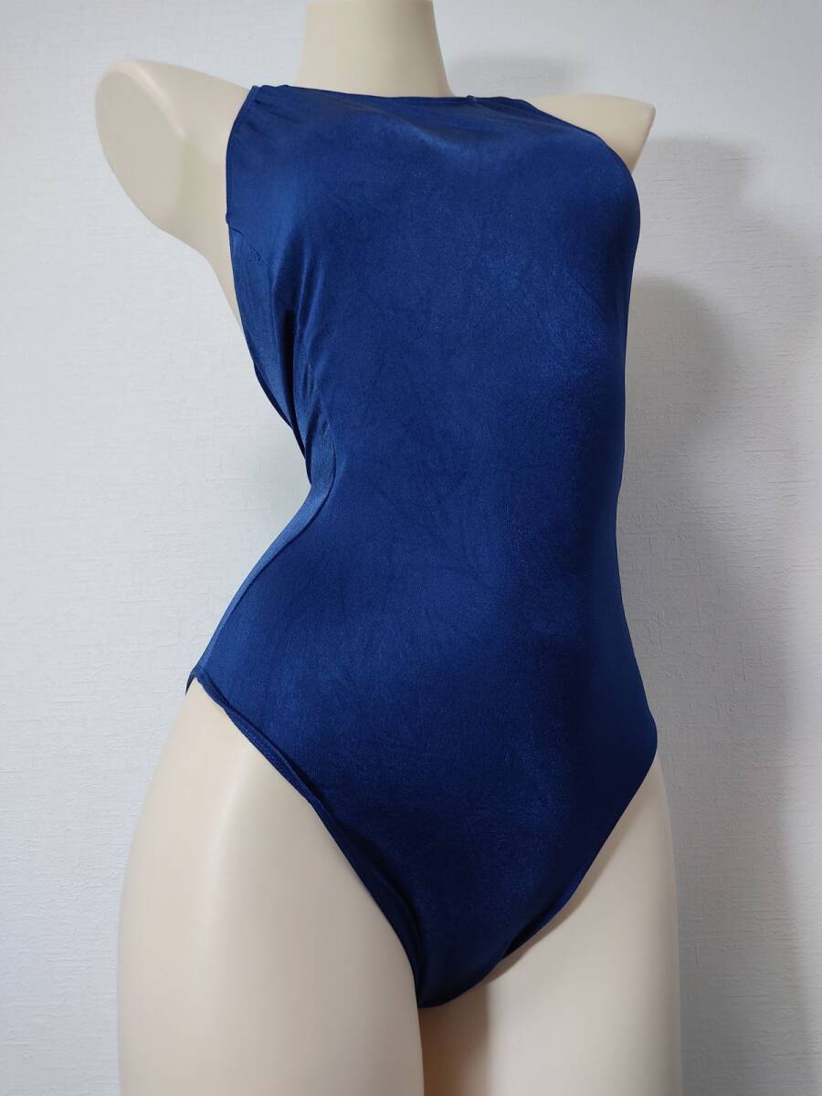 37*女子競泳水着(L程度)★オープンバック光沢ネイビー濃紺★伸縮性あり男性も