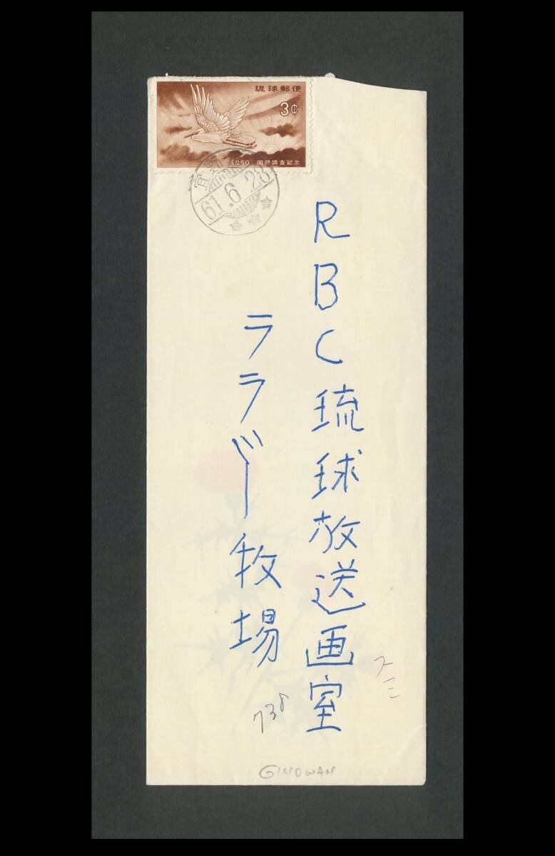 実逓カバー 国勢調査3c貼 櫛形日付印 宜野座 61.6.28 星 上辺開封