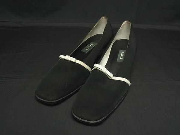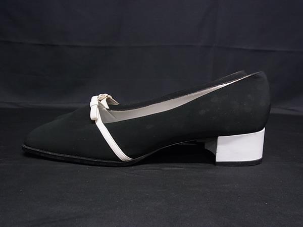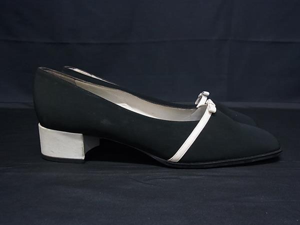 BALLY バリー ナイロン×レザー リボン ヒール パンプス 表記サイズ 38 (約25.0cm) 靴 シューズ ブラック系×ホワイト系 DK0534