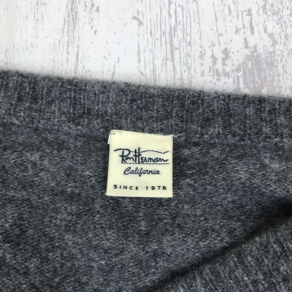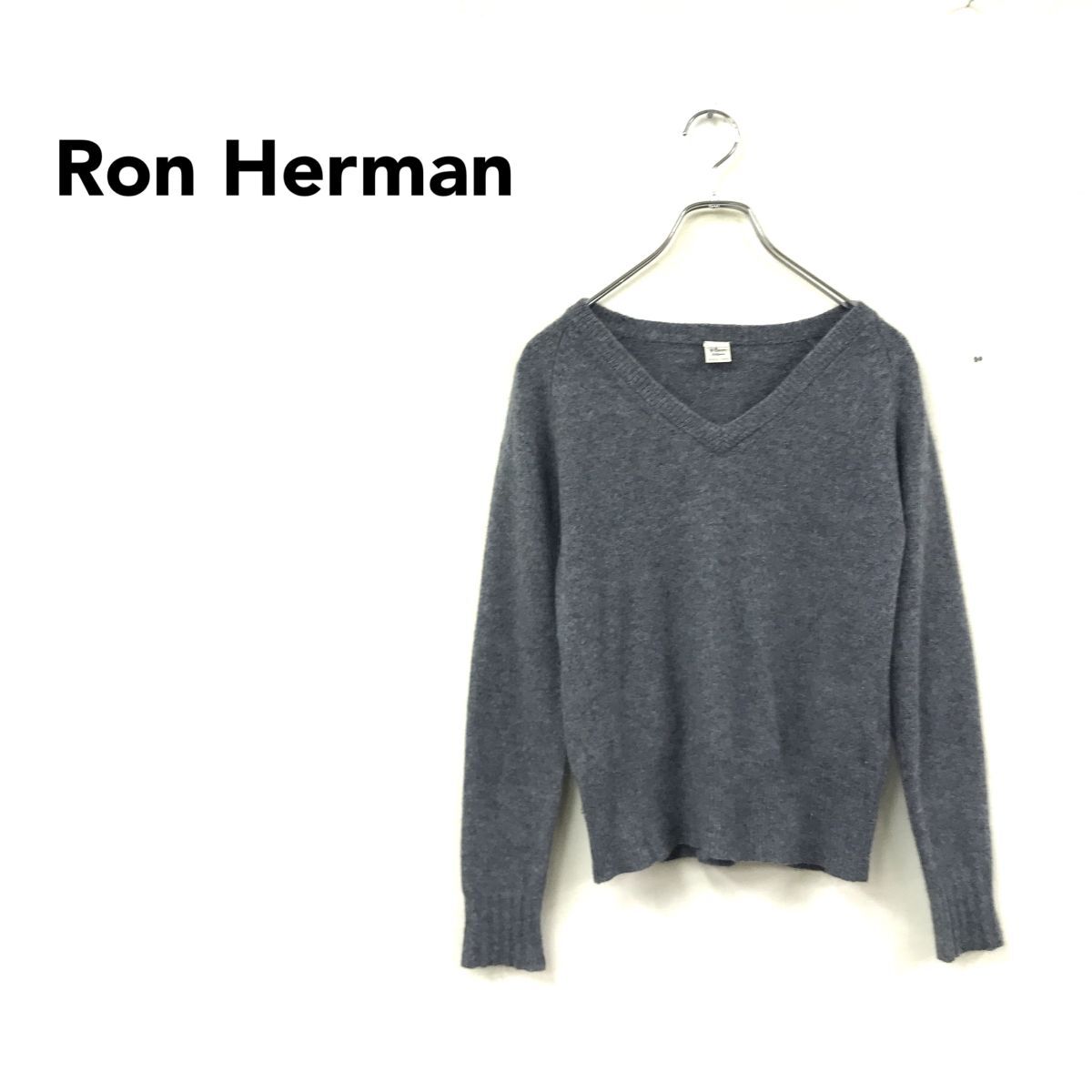 2N1991-G◆ RonHerman ロンハーマン カシミヤVネックニットプルオーバー セーター リブ エルボーパッチ コンパクト 無地 ◆ sizeS グレー