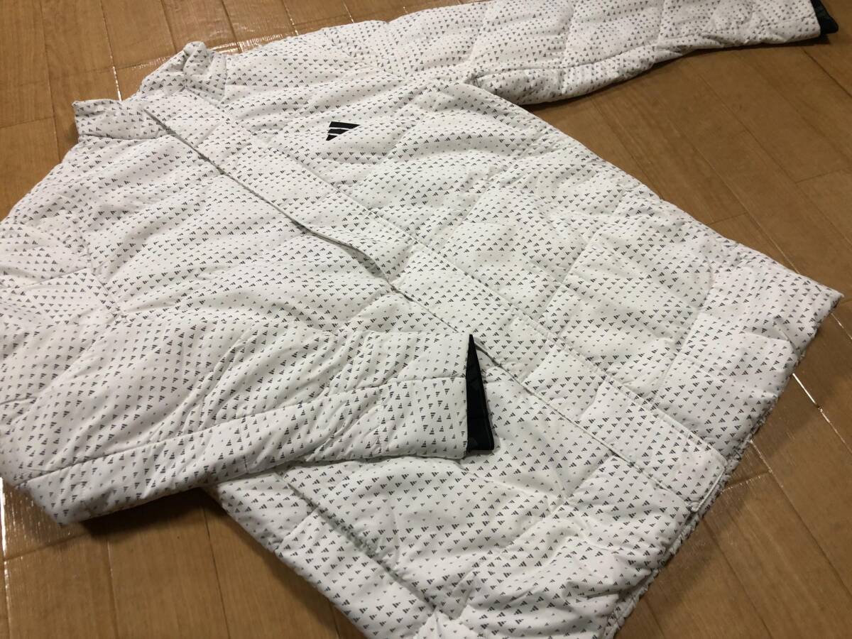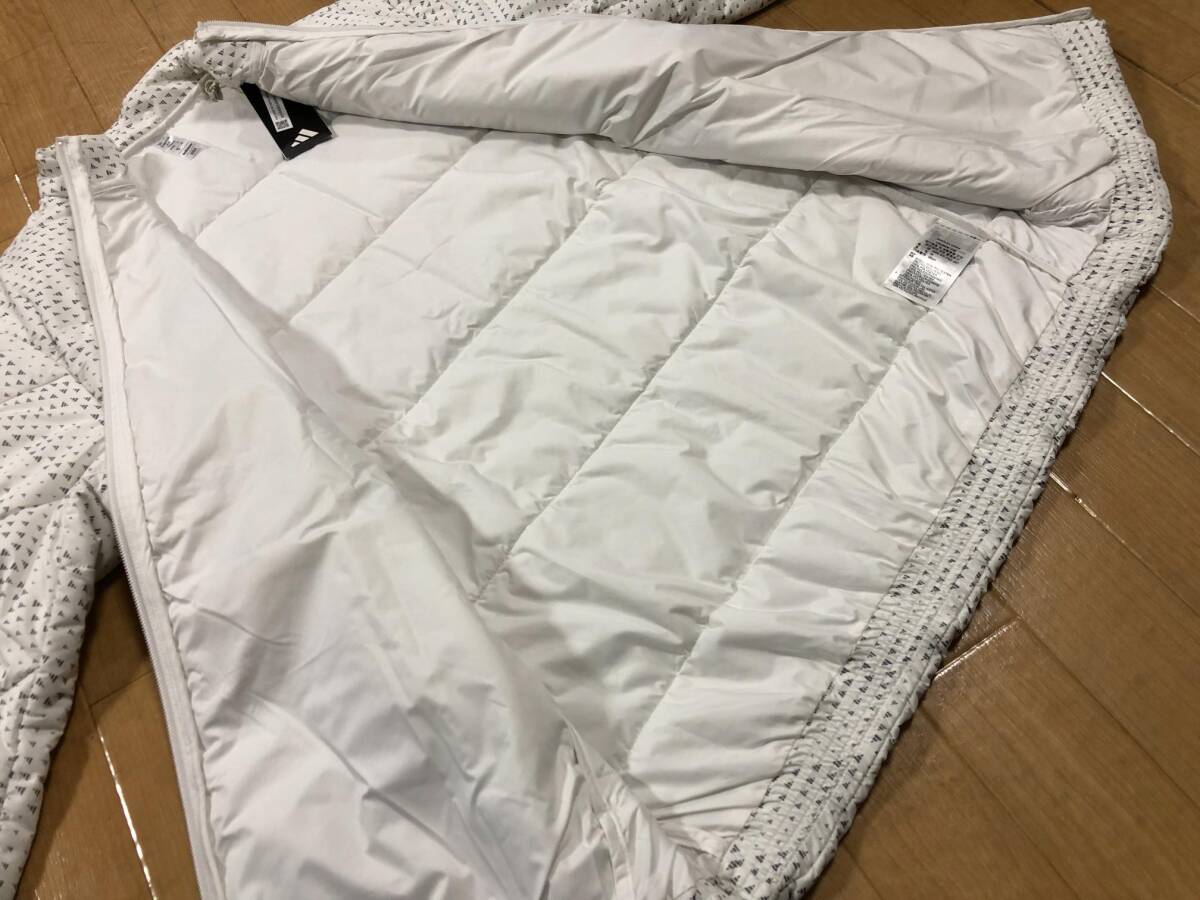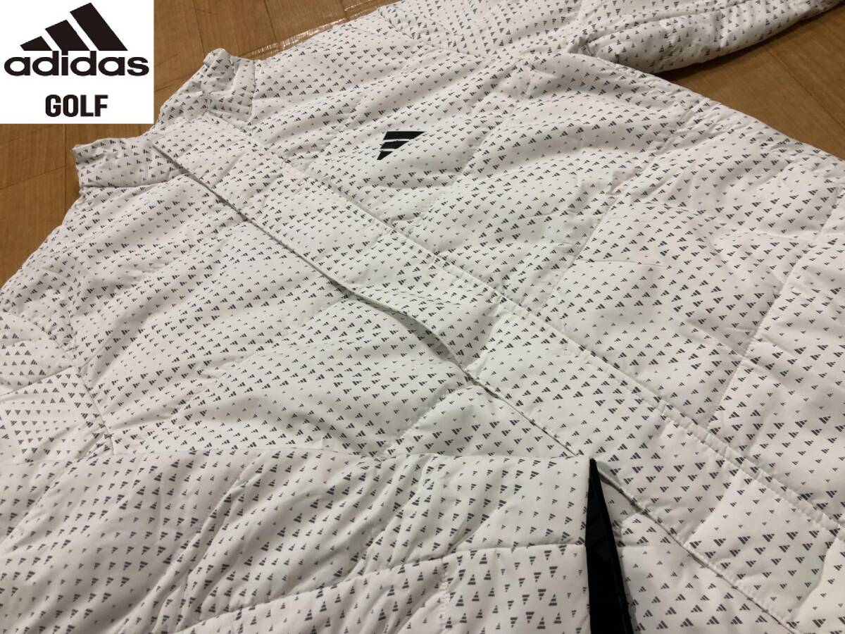 ・スピード発送 新品未使用 adidas Golf(アディダスゴルフ) 秋冬 BOSグラフィック 軽量保温 中綿ジャケット MKS21(ホワイト)L