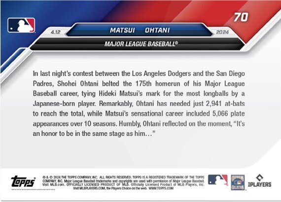 大谷翔平 松井秀喜 2024 MLB TOPPS NOW Card 70