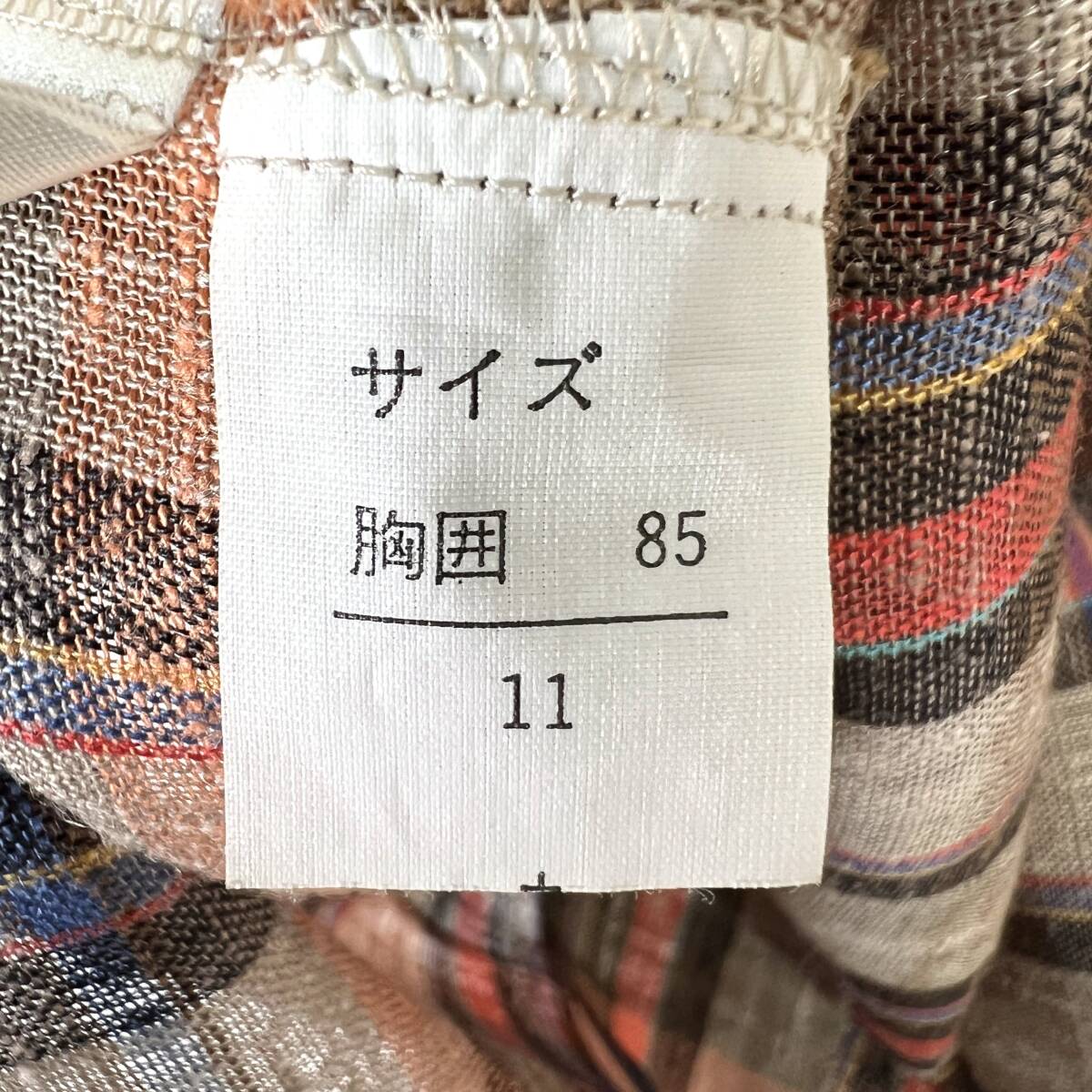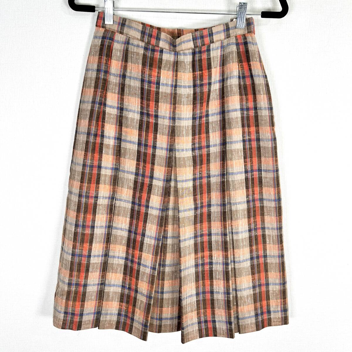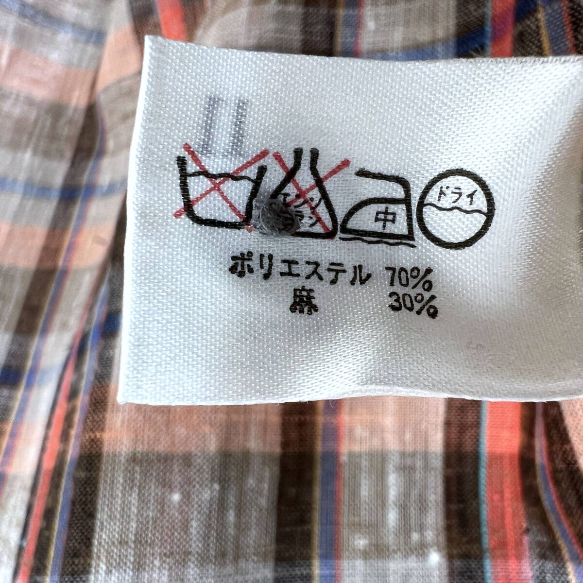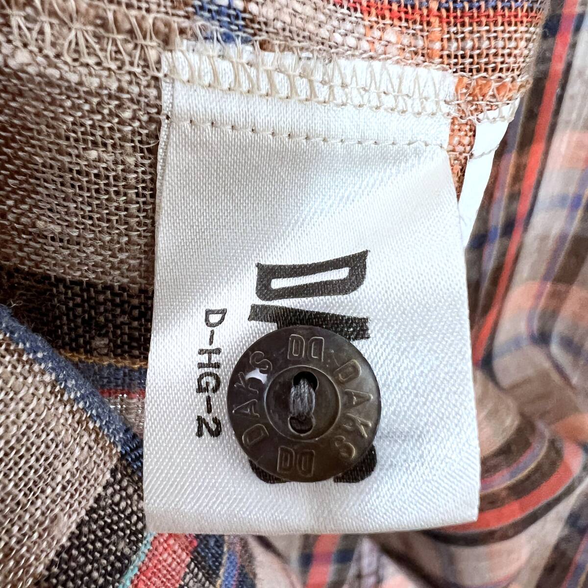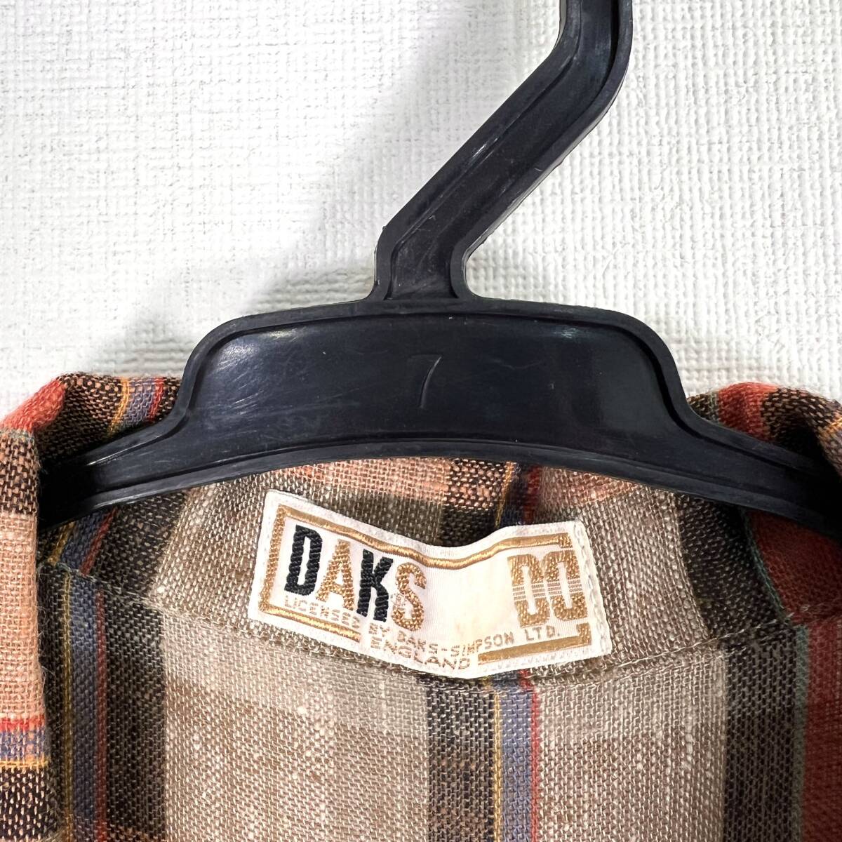 【DAKS】ダックス ブラウン系 チェック柄 リネン混 半袖 ブラウス×ロングスカート セットアップ レディース 11号 66-92【c033】
