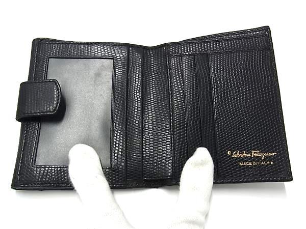1円 ■美品■ Salvatore Ferragamo フェラガモ ヴァラリボン レザー 二つ折り 財布 ウォレット 札入れ 小銭入れ ブラック系 FR6966