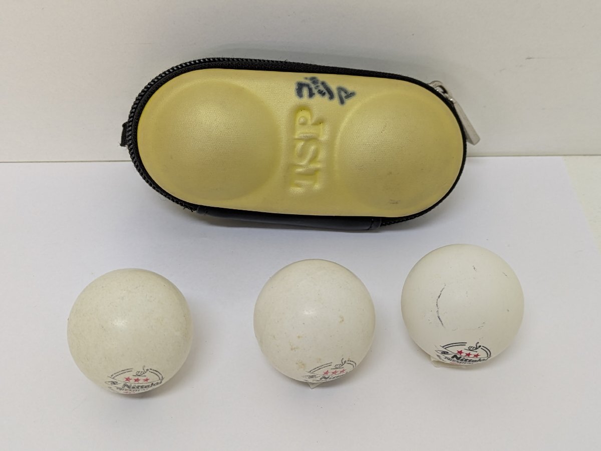 ♪卓球 ラケット ケース付き ボール 3個 ケース付き 全てに苗字の記名あり 中古