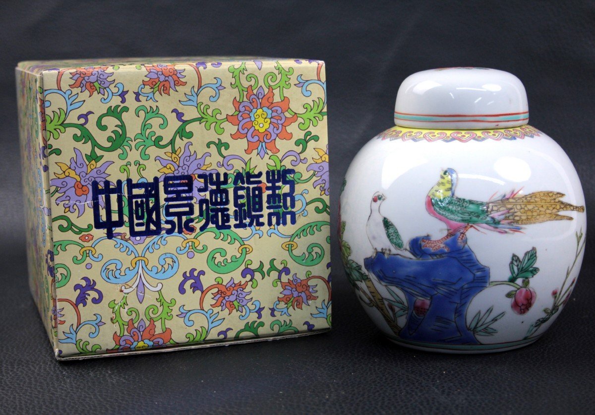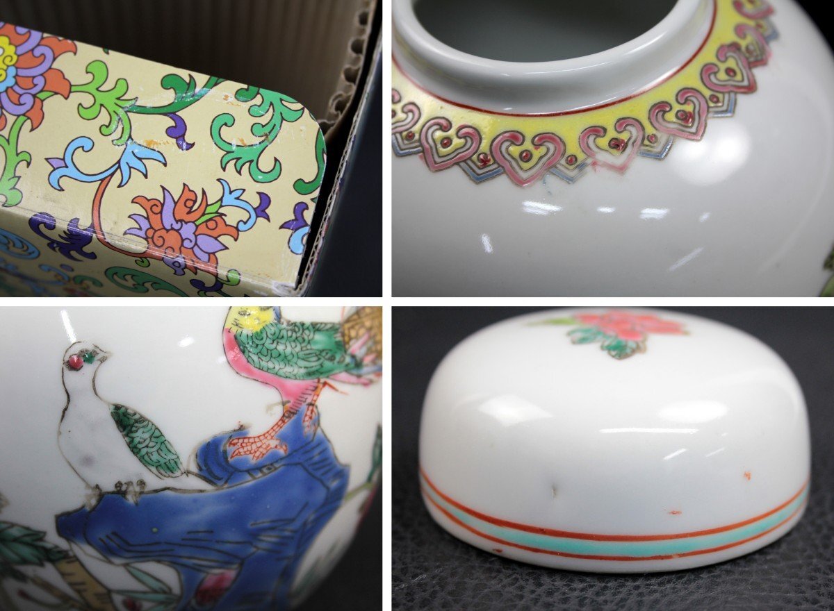 | ▼商品名 | 中国景徳鎮製 色絵花鳥文 花鳥 茶壺 陶器製 蓋付き ツボ 骨董品 中国骨董 中国古玩 中国美術 アンティーク コレクター 箱付 |