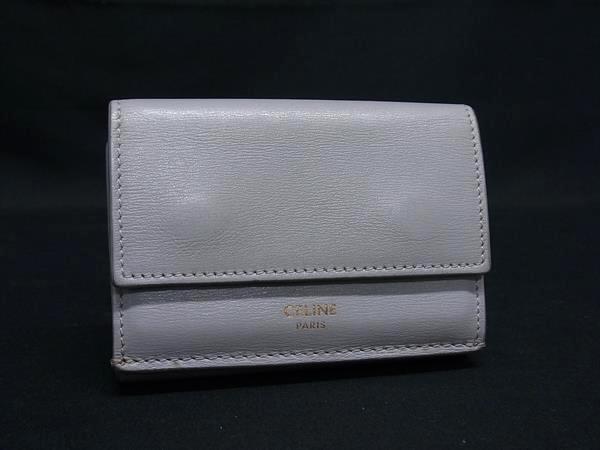 1円 CELINE セリーヌ フォールデッドコンパクトウォレット レザー 三つ折り 財布 ウォレット 小銭入れ 札入れ ライトグレー系 FR6684