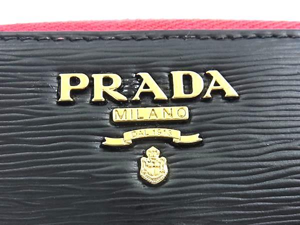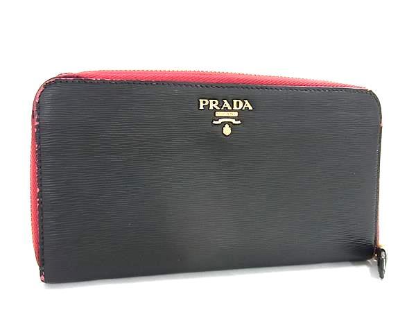 1円 PRADA プラダ レザー ラウンドファスナー 長財布 ウォレット 札入れ 小銭入れ カード入れ ブラック系 FT2949