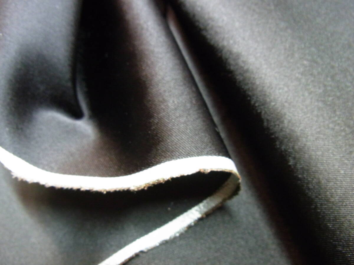 黒色厚手で光沢ある裏地ですキュプラ60%とアセテート40%の混紡素材の高級裏地です縫製工場の在庫残反です、ご理解のある方お願いいたします折りたたんでの発送になります(多少シワになりますがご了承ください)。生地幅約90センチ、長さ約1.9メーターです不明点はご質問ください生地端が50×30センチぐらい欠損あります(写真参照)ご了承ください