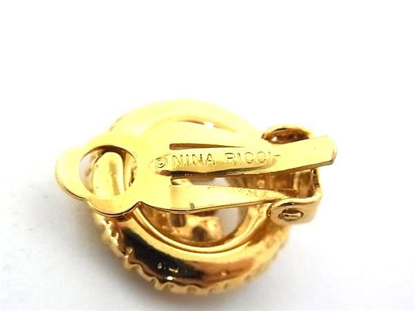 ■美品■ NINA RICCI ニナリッチ ラインストーン クリップ式 イヤリング アクセサリー レディース ゴールド系 DK0503