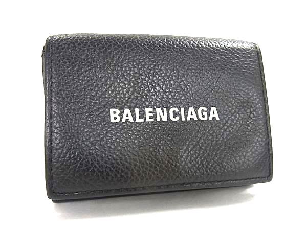 1円 BALENCIAGA バレンシアガ 594312 キャッシュ ミニ レザー 三つ折り 財布 ウォレット 小銭入れ 札入れ レディース ブラック系 FT2642