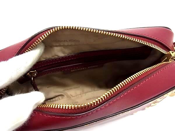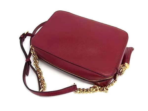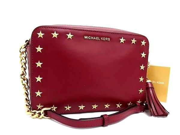 1円 ■美品■ MICHAEL KORS マイケルコース レザー タッセル スタースタッズ クロスボディ ショルダーバッグ 斜め掛け ボルドー系 FU6321