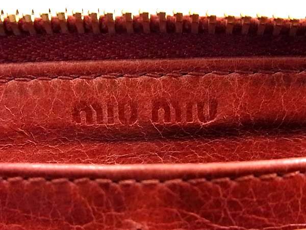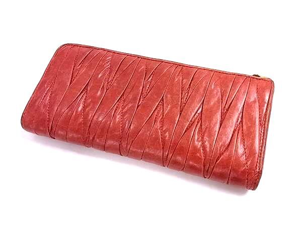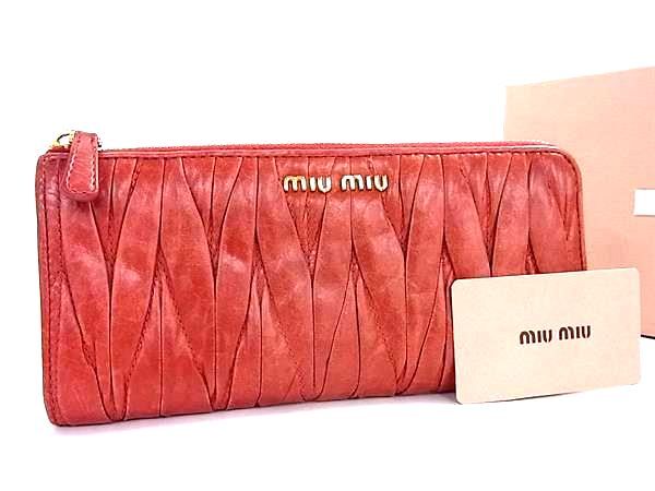 1円 miumiu ミュウミュウ マテラッセ レザー L字ファスナー 長財布 ウォレット 小銭入れ 札入れ レディース レッド系 FR6695