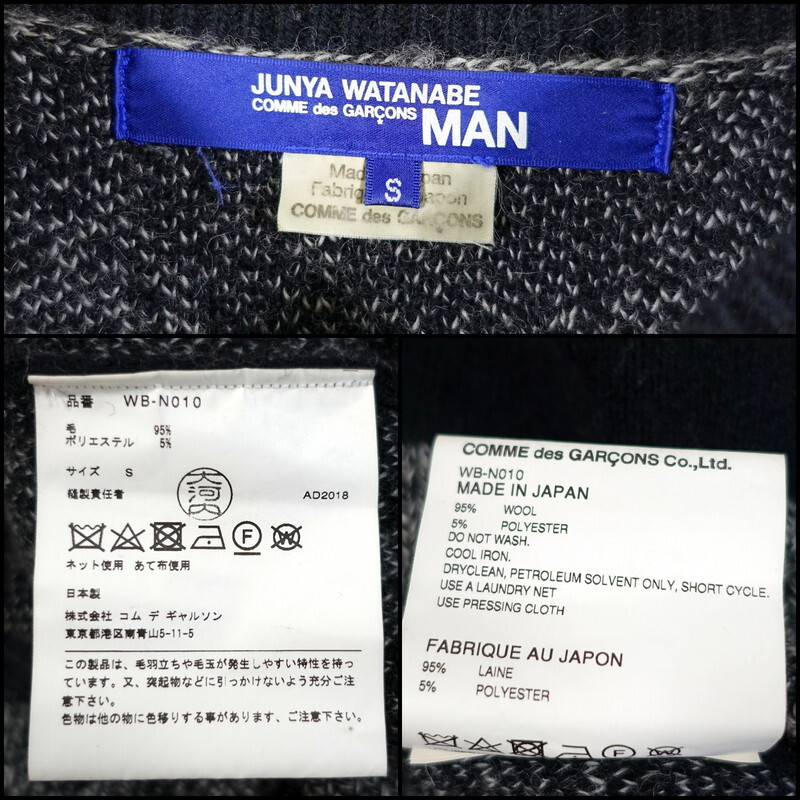 【良品】ジュンヤワタナベマン 幾何学柄ニット JUNYA WATANABE Comme des garcons MAN サイズS 黒灰