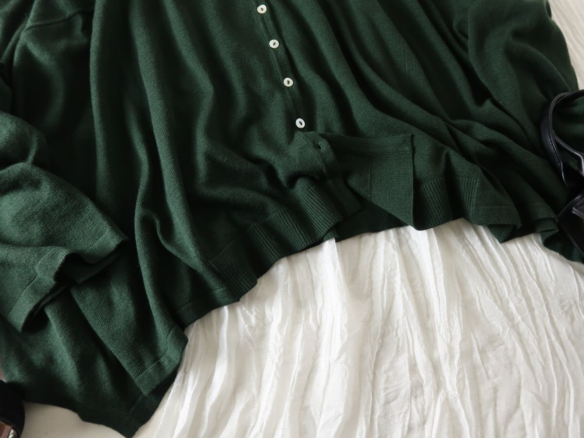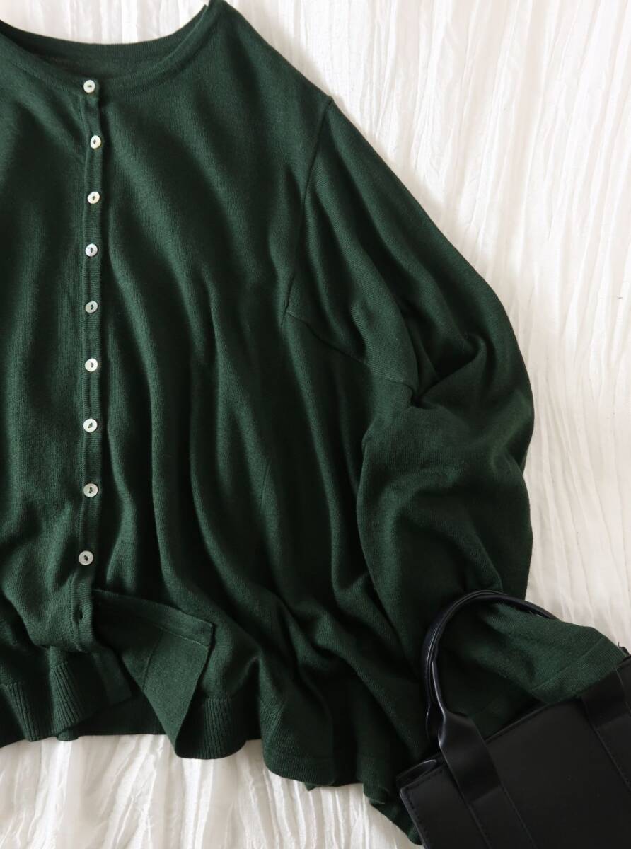 カーデとしても後ろ開きプルオーバーとしても使えるうれしいアイテム。