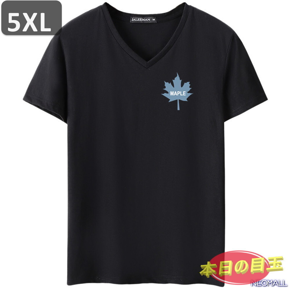 本日のお買得 ☆ Vネック 半袖 Tシャツ【455】 ブラック 5XLサイズ トップス シャツ シンプル イラスト デザイン 春夏
