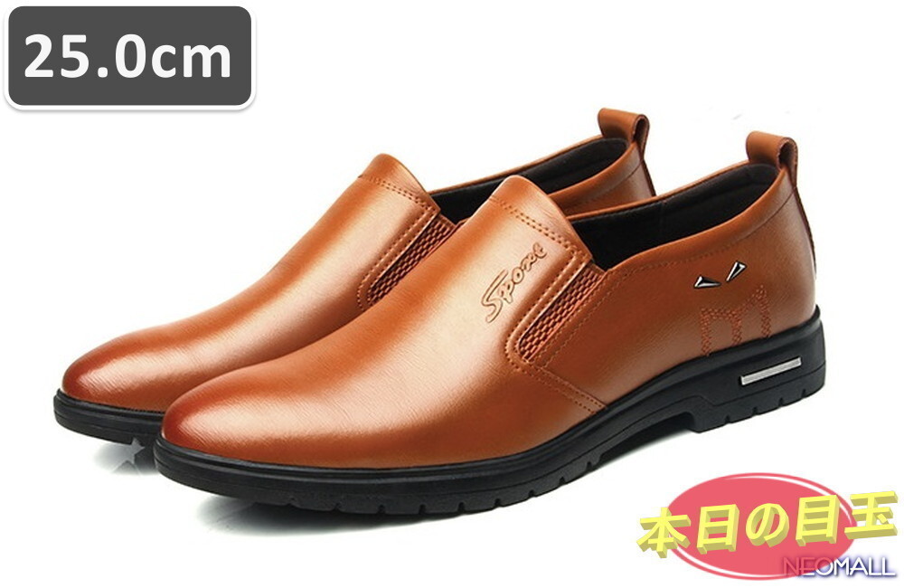 本日の目玉 ☆ メンズ ビジネス レザー シューズ ブラウン サイズ 25.0cm 革靴 靴 カジュアル 屈曲性 通勤 軽量 【439】