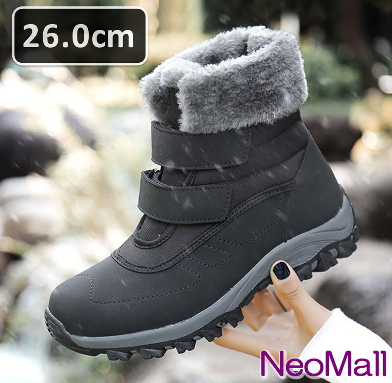 レディース スノーシューズ 【958】 ブラック 26.0cm ムートンブーツ スニーカー ウィンターブーツ 裏起毛 防水 防寒 防滑 冬用靴 綿靴