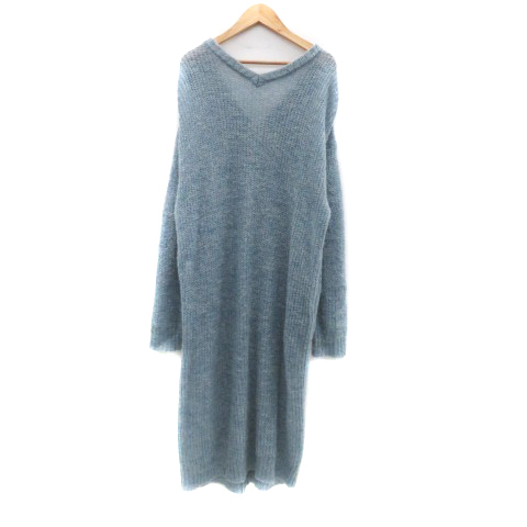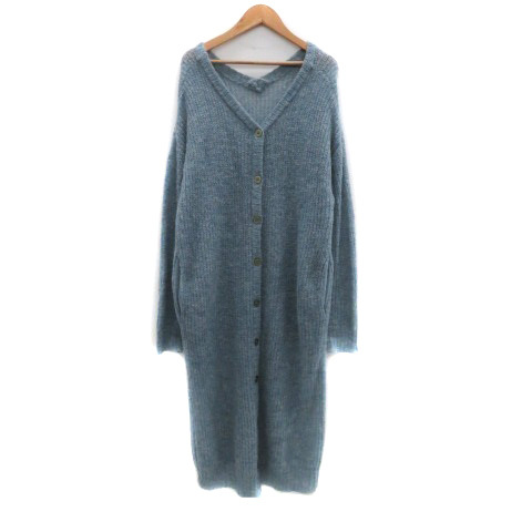 ケイビーエフ KBF アーバンリサーチ ニットカーディガン Vネック ロング丈 モヘヤ混 ウール混 One 水色 ライトブルー /HO43 レディース