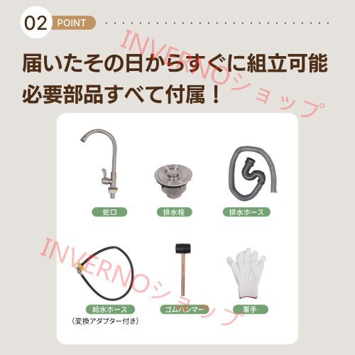 • ◎04【届いたその日からすぐに組立可能必要部品すべて付属! 】蛇口 排水栓 排水ホース 給水ホース(変換アダプター付き) ゴムハンマー 軍手