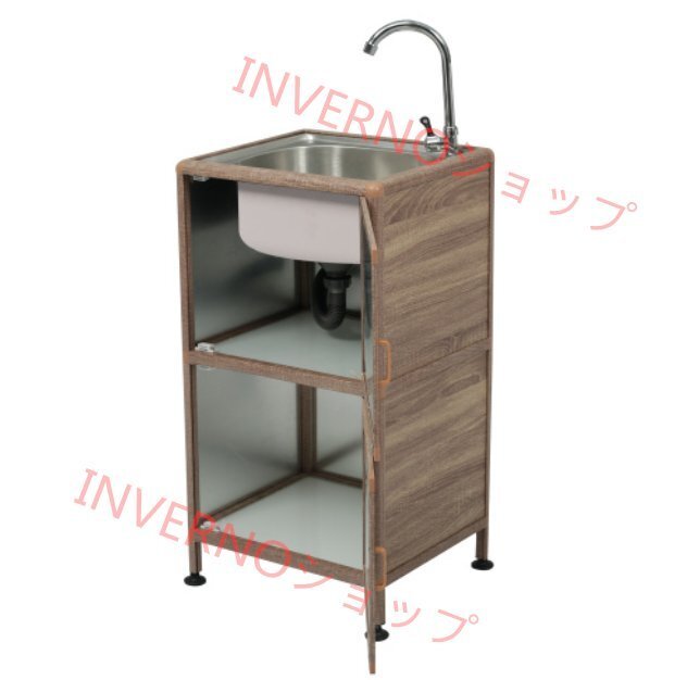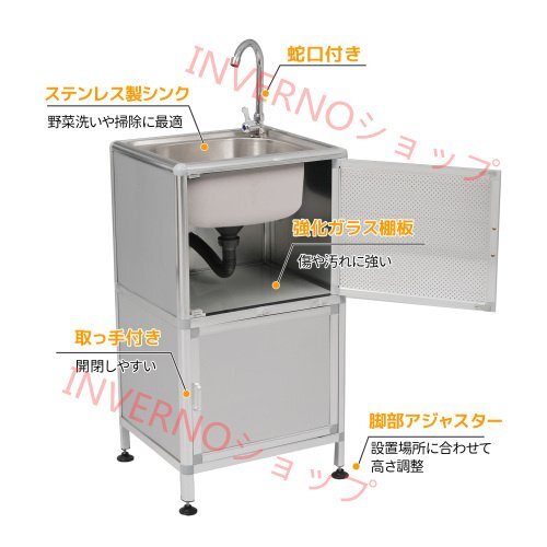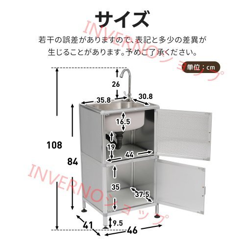 屋外 流し台 ステンレス W46×D35×H108cm ガーデンシンク 作業台 キッチン 台所 屋外 簡易 シンク 組み立て簡単 収納棚付 庭