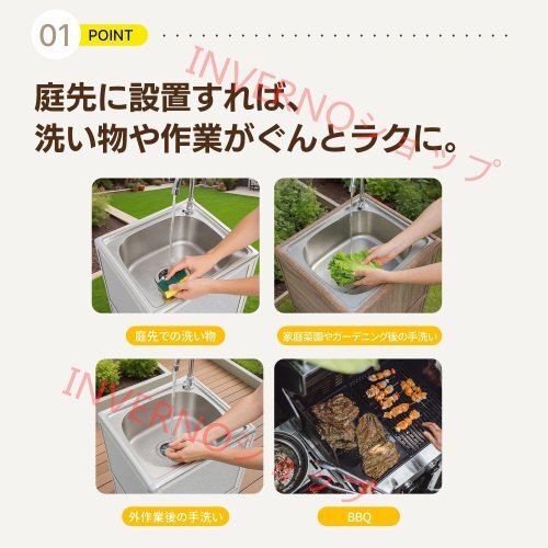 • ◎02【庭先に設置すれば、洗い物や作業がぐんとラクに。】(庭先での洗い物)(家庭菜園やガーデニング後の手洗い)(外作業後の手洗い)(BBQ)