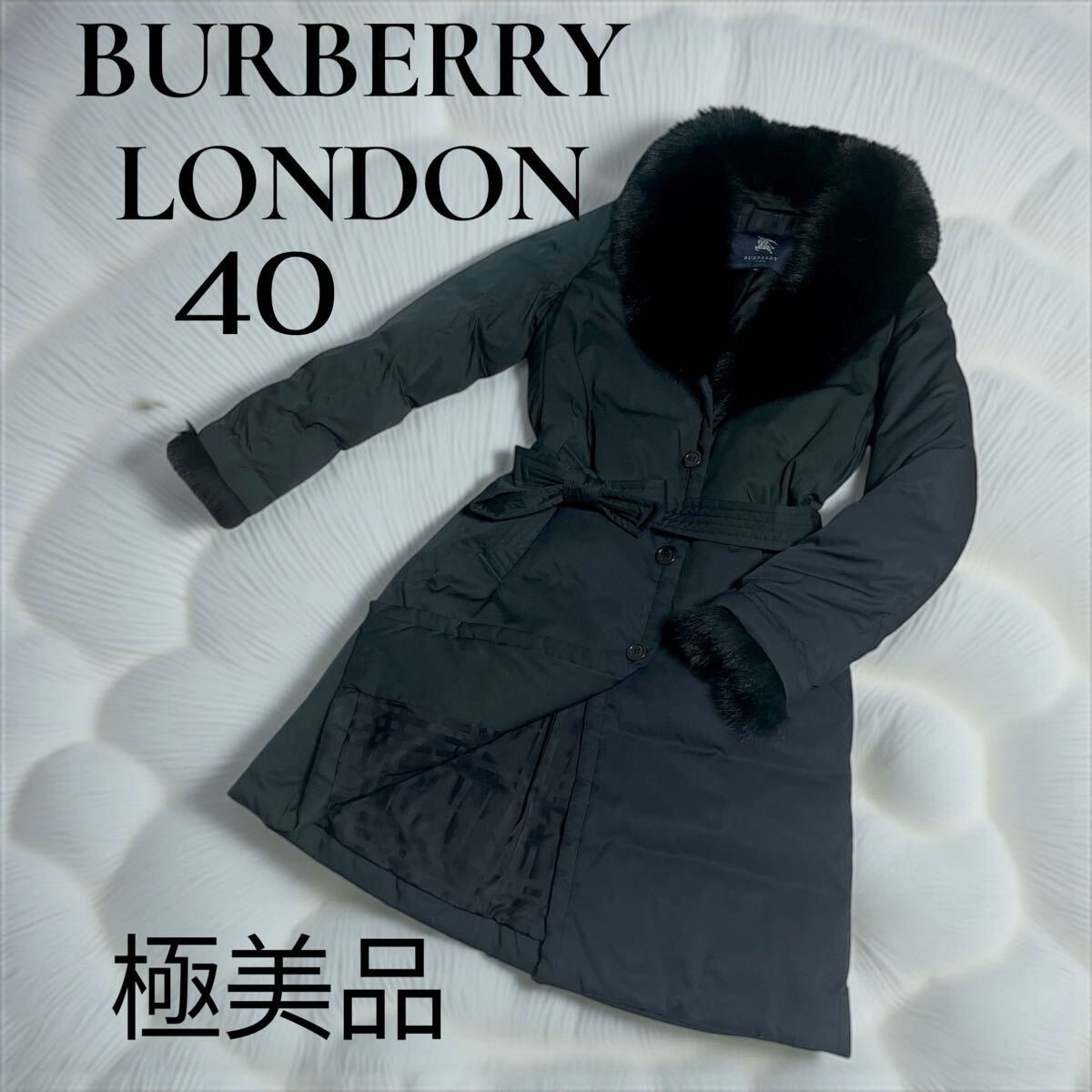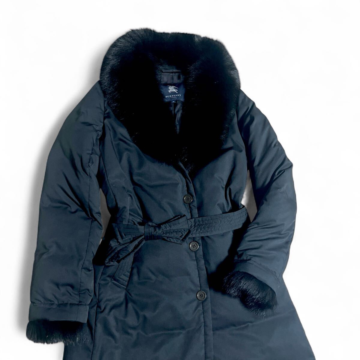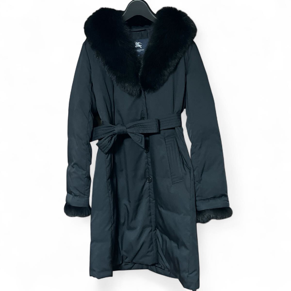 【極美品 】バーバリーロンドン 3way ダウンコート ブルーフォックスファー BURBERRYLONDON ロングコート ベルト付き ダウン ブラック 黒 シャドーチェック 3way ファー取り外し可能 ロゴ刻印ボタン 冬 Lサイズ