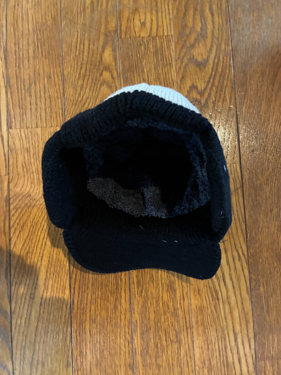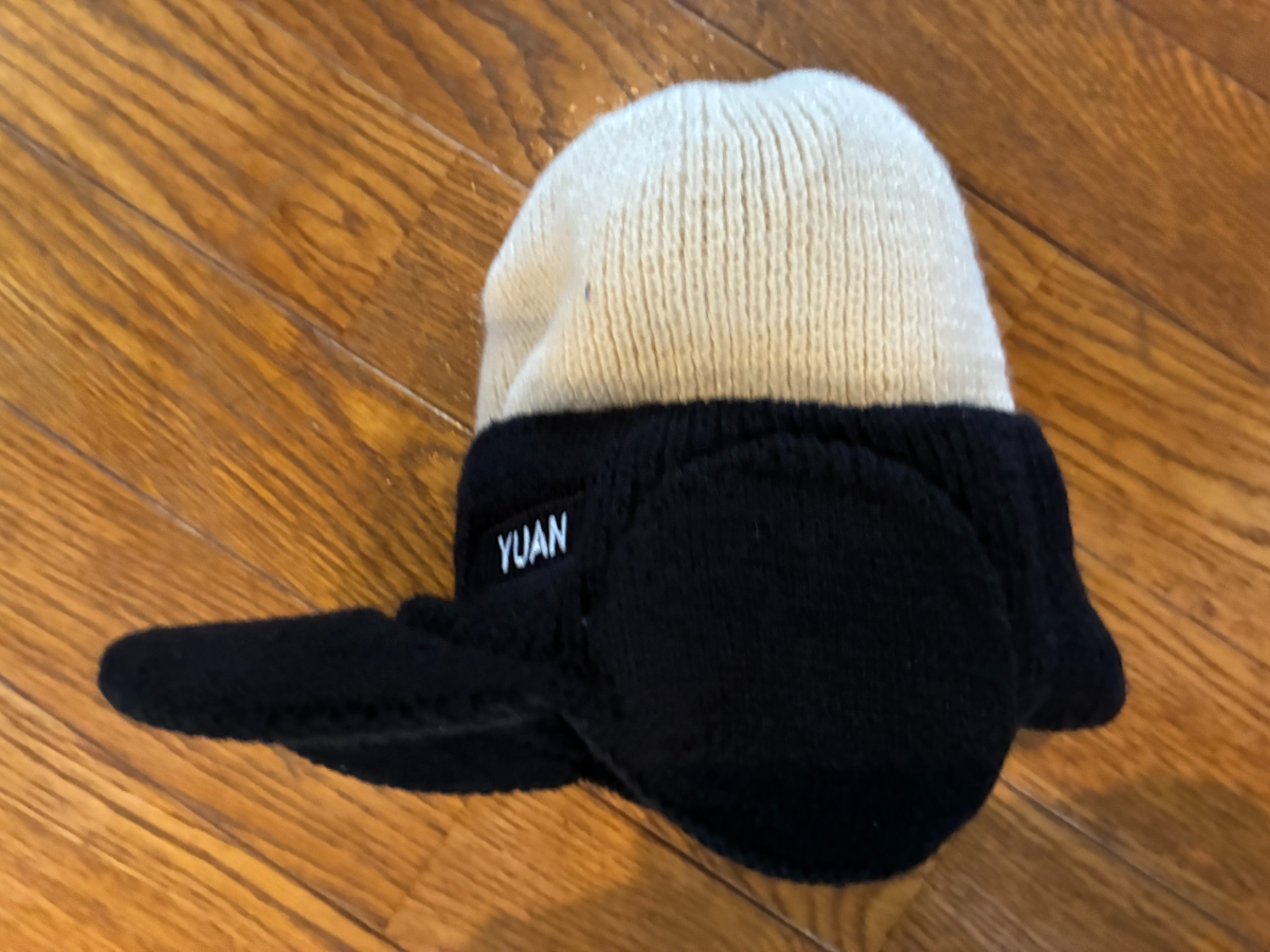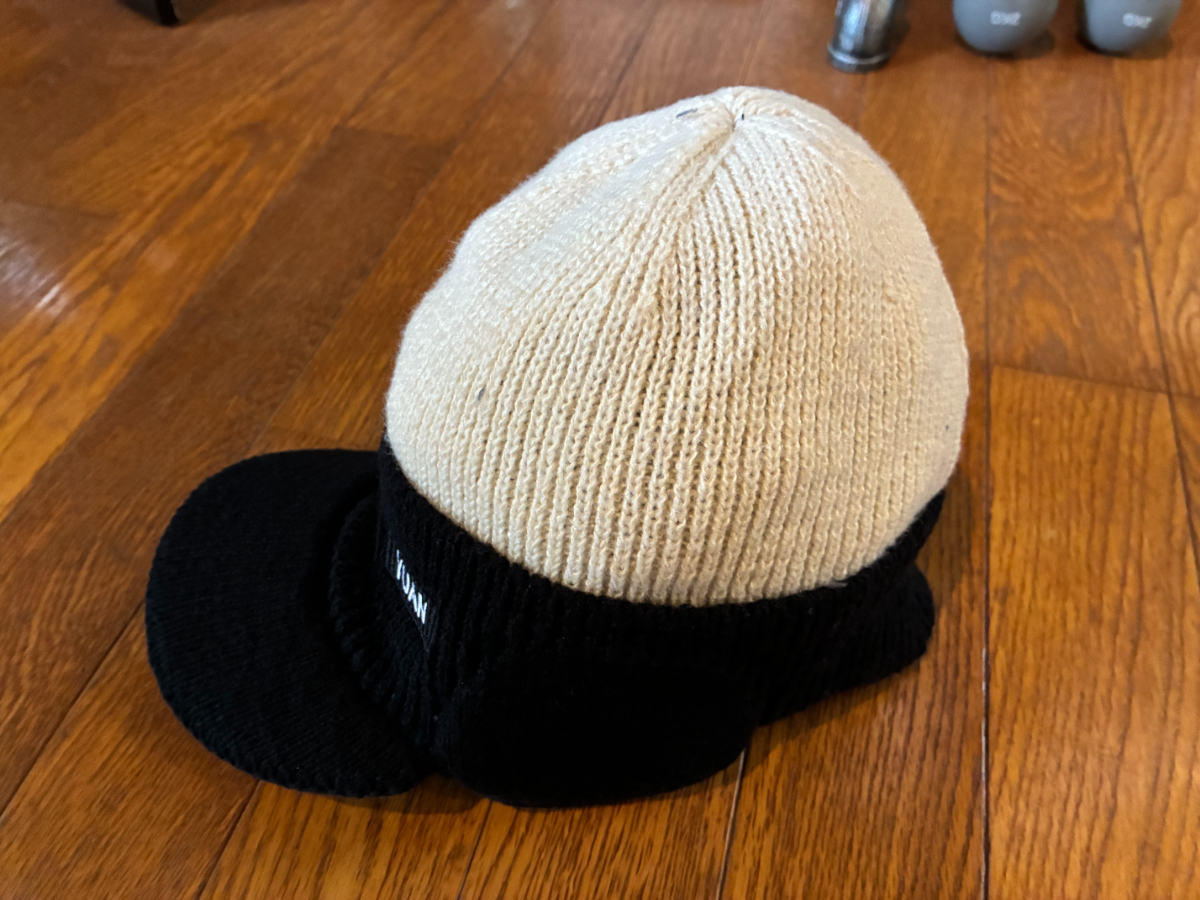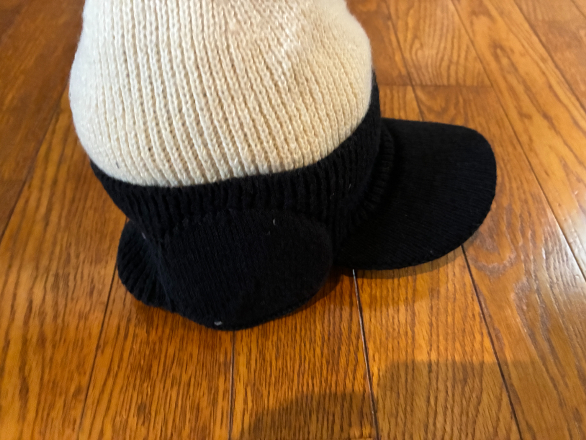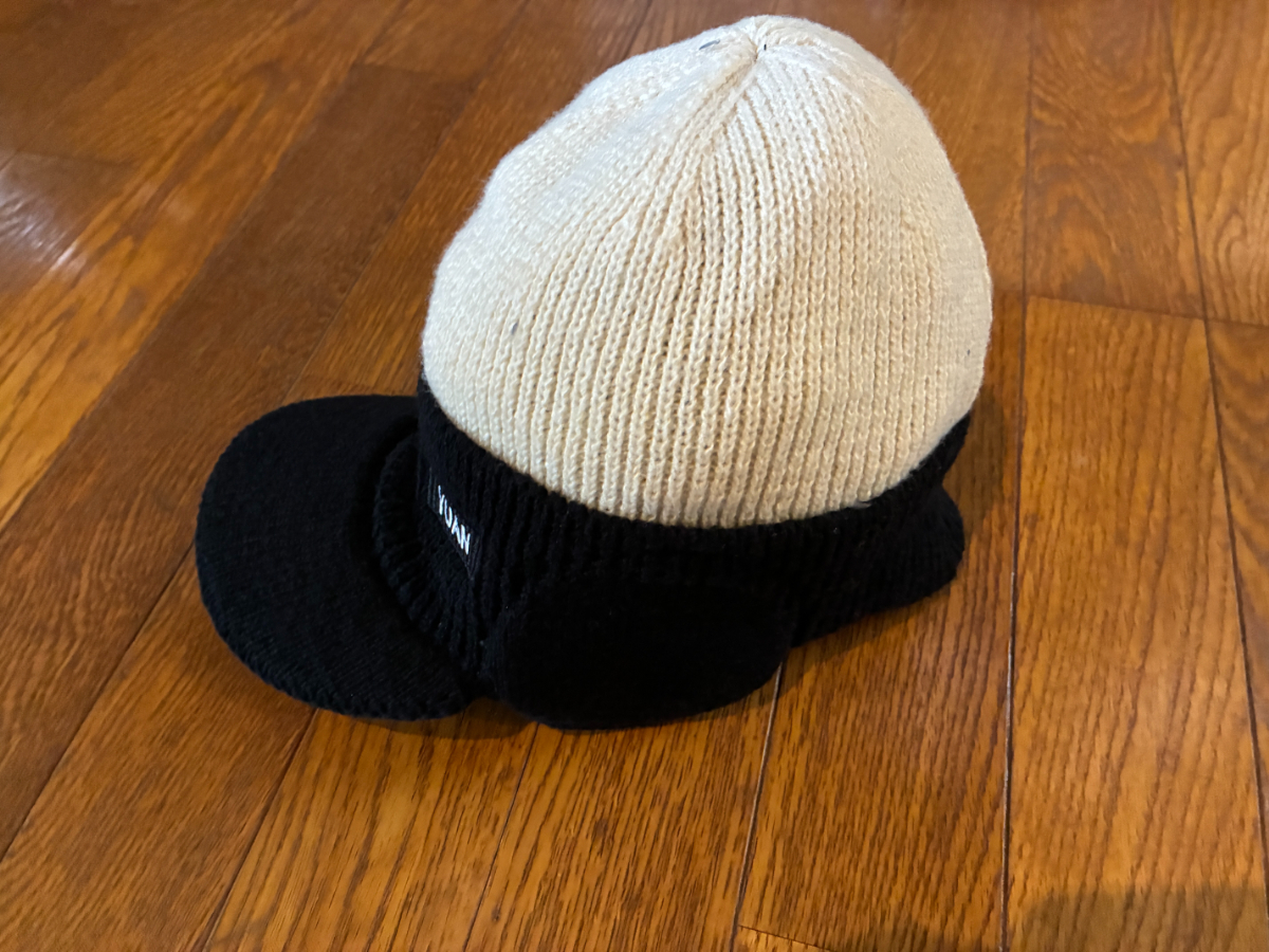 新品A3 防寒ウール混ニット帽耳当て一体 つば付き 裏地起毛