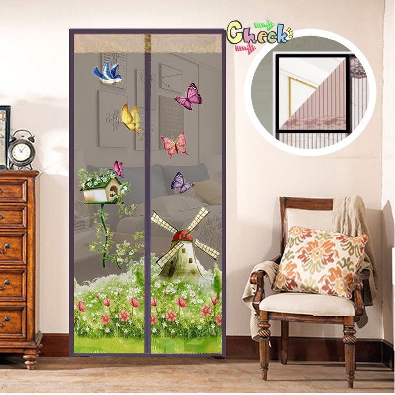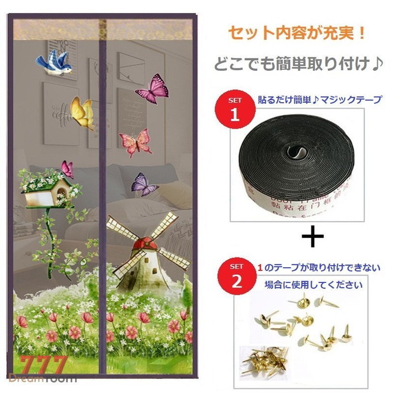 自動開閉☆どこでも設置OK!網戸カーテン 180cm×220cm マグネット 蚊 害虫 マジックテープ 目隠し 虫よけ ネット I-043