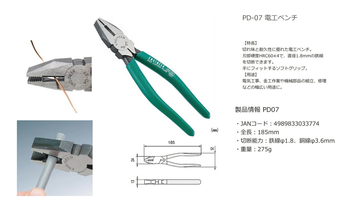 〈エンジニア〉プライヤー175mm PD-07 JAN:4989833033774