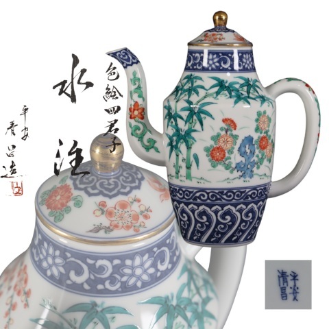 | 商品説明 | 商品名:蔵出し品 加藤清昌 色絵四君子 水注 煎茶道具 付属品:共箱あり。 サイズ:高さ19cm、口径5,2cm、高台5,8cm。 状態:無傷になります。 |