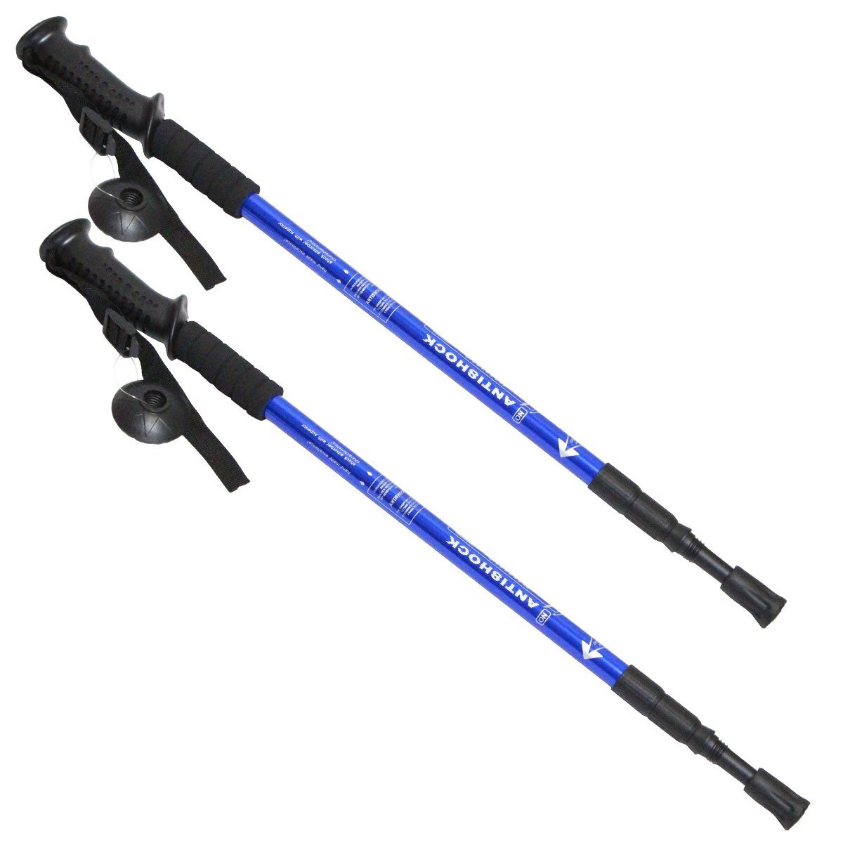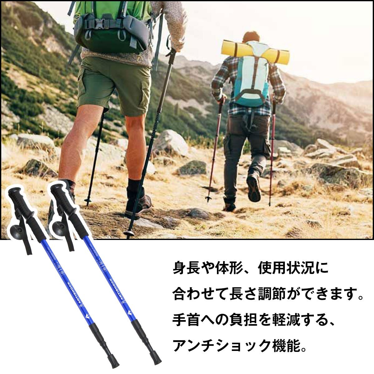2本セット トレッキングポール ブルー/青 ウォーキングポール 登山 雪山 杖 トレッキングステッキ 棒 補助 軽量 アルミ製