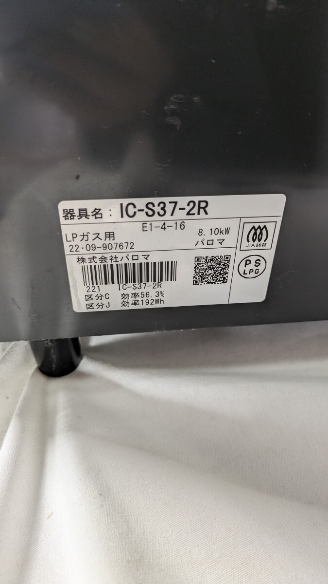 商品概要 N【500円スタート】 パロマ ガステーブル IC-S37-2R LPガス用 2022年製 右強火力 ガスコンロ 動作未確認品