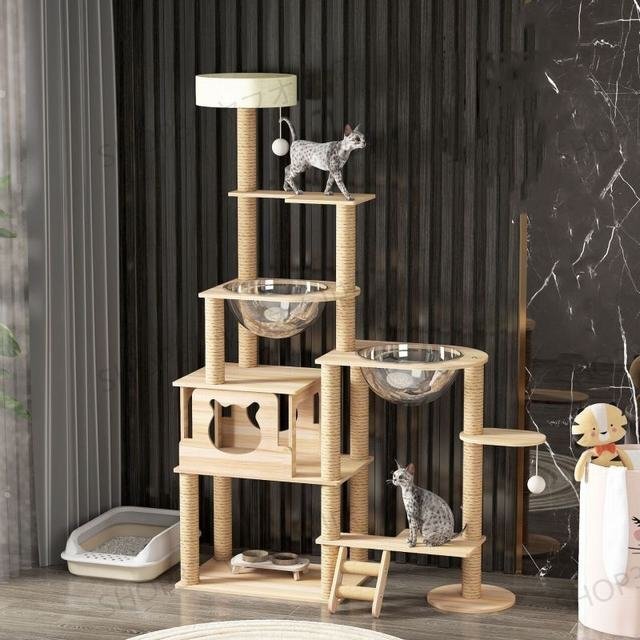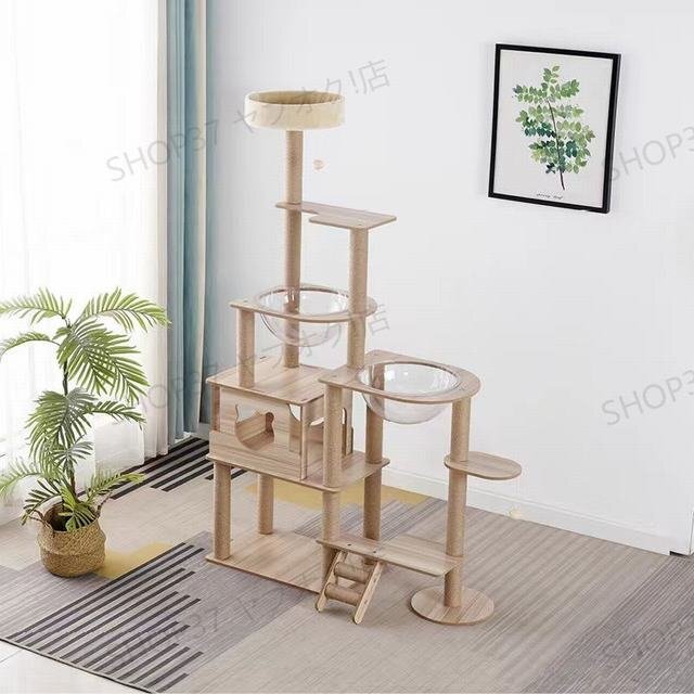 据え置き型のMDF木製キャットタワーは頑丈で安定性もあるので多頭飼い大型猫にもおススメです。