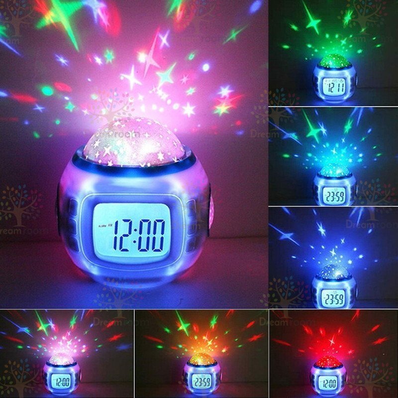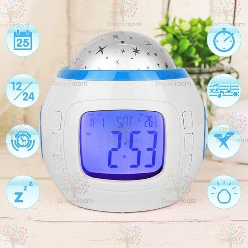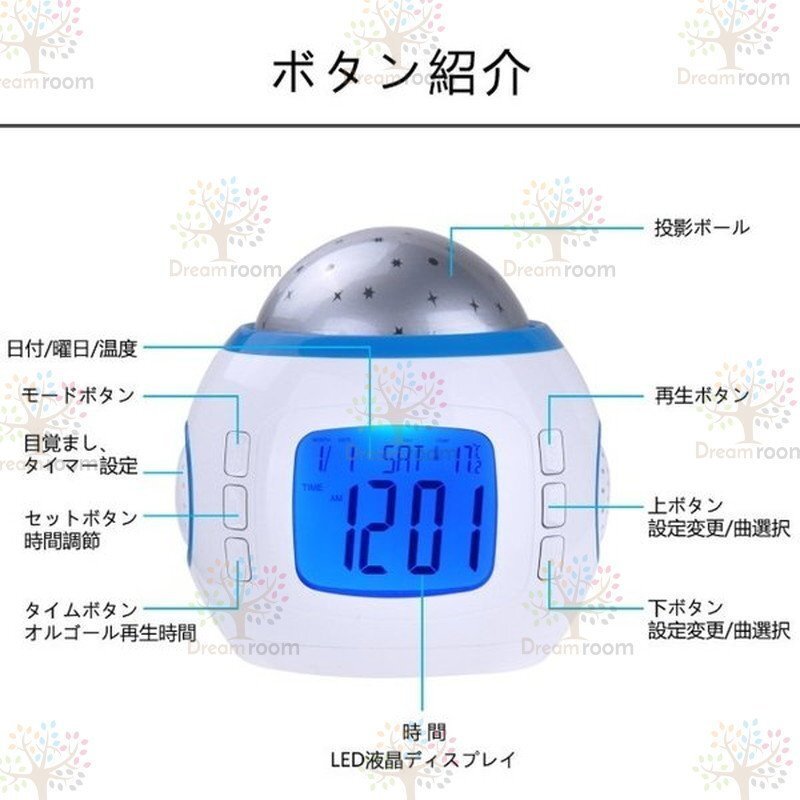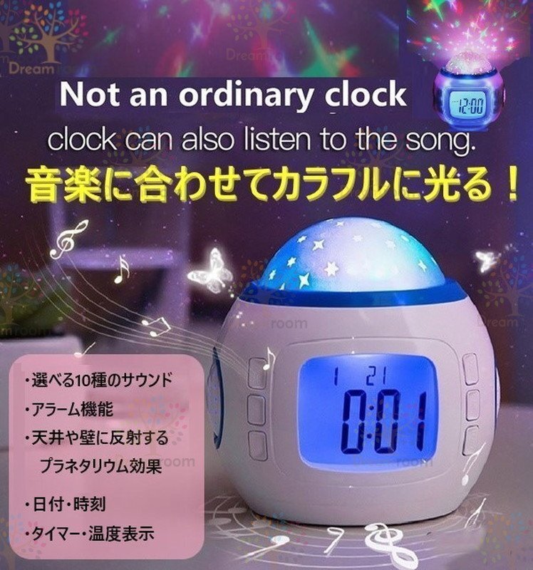 プラネタリウム 目覚まし時計 おしゃれ 大音量 子供 投影 イルミネーション 置時計 温度計 デジタル 時計 オルゴール 4way