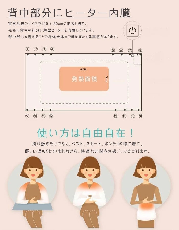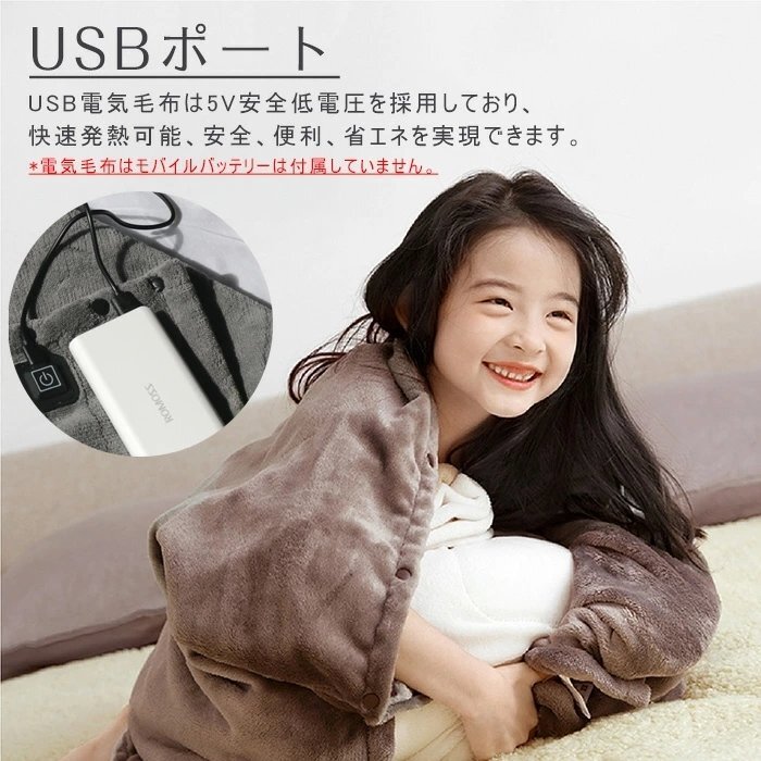 【USB電気敷き掛毛布】140*80cmの大判サイズ、男女兼用。膝の保護だけでなく、肩にもかけられます。冷えやすい足をカバーできます。昼寝のために腰を温めるベッド毛布としても使えます。USB端子を使用可能で室内、事務所、釣りなど室外活動に便利で使用可能。友達や家族へのギフトとして最適。